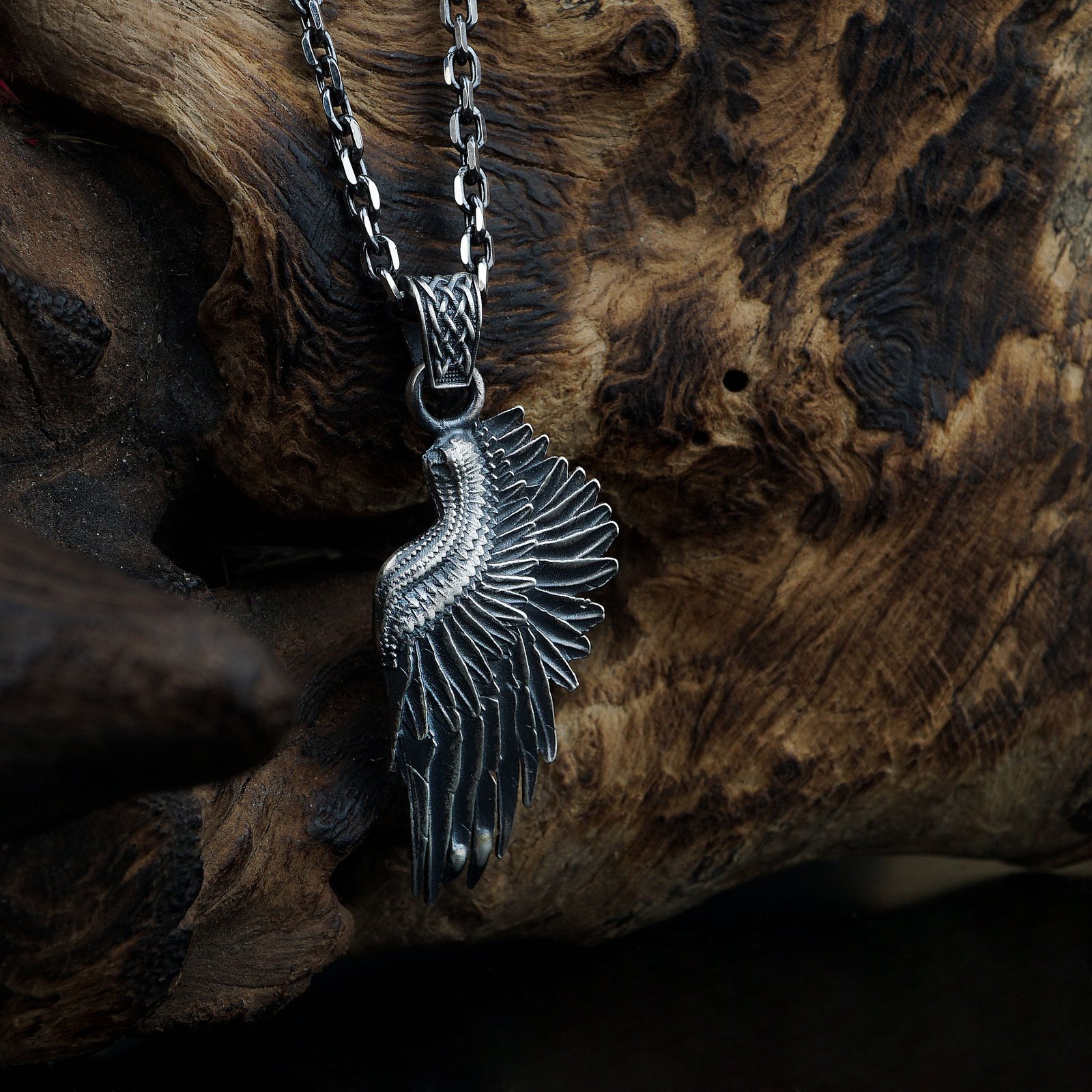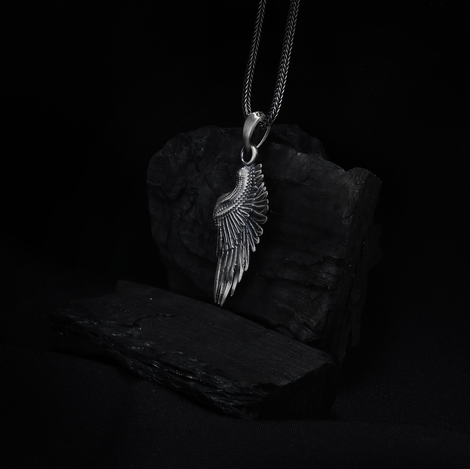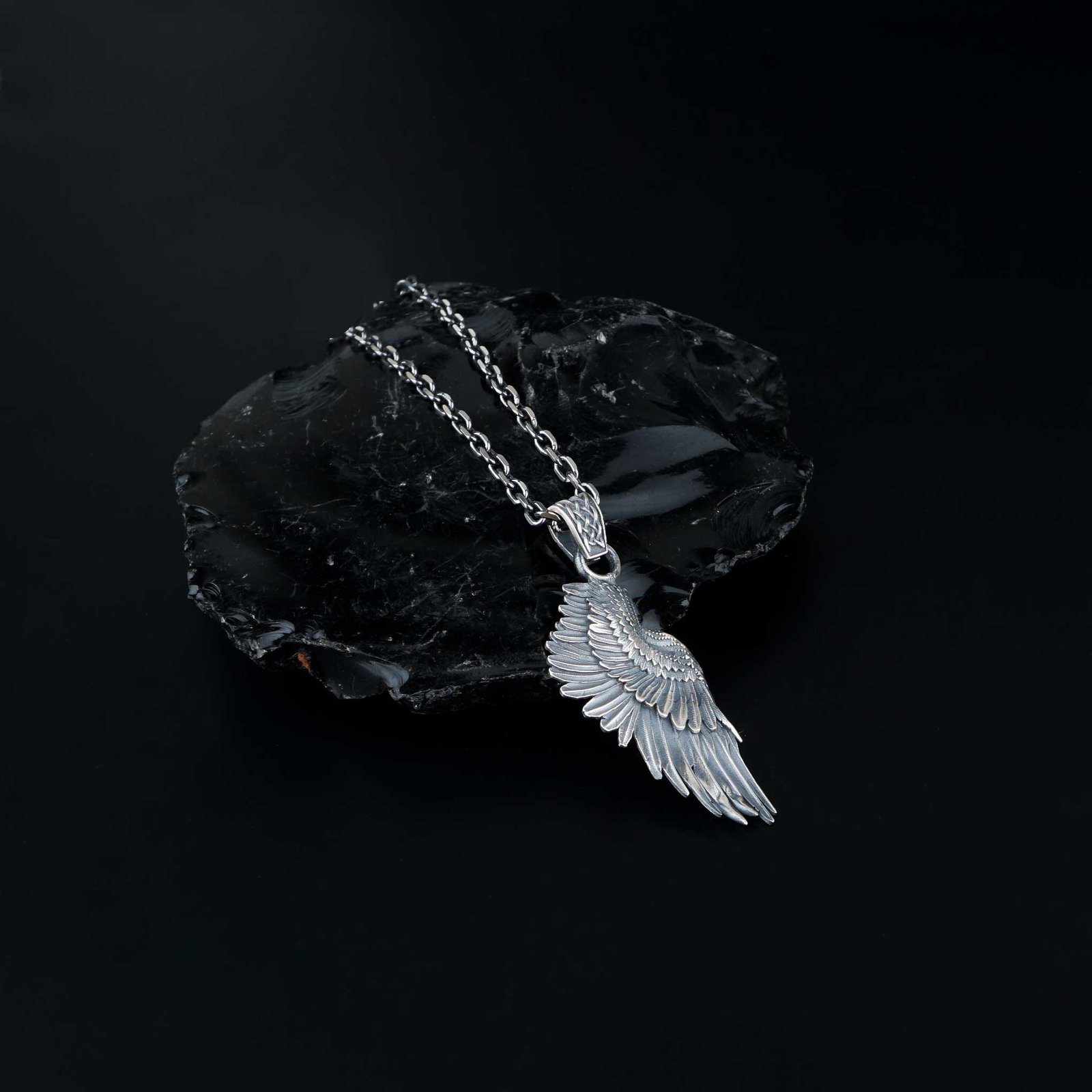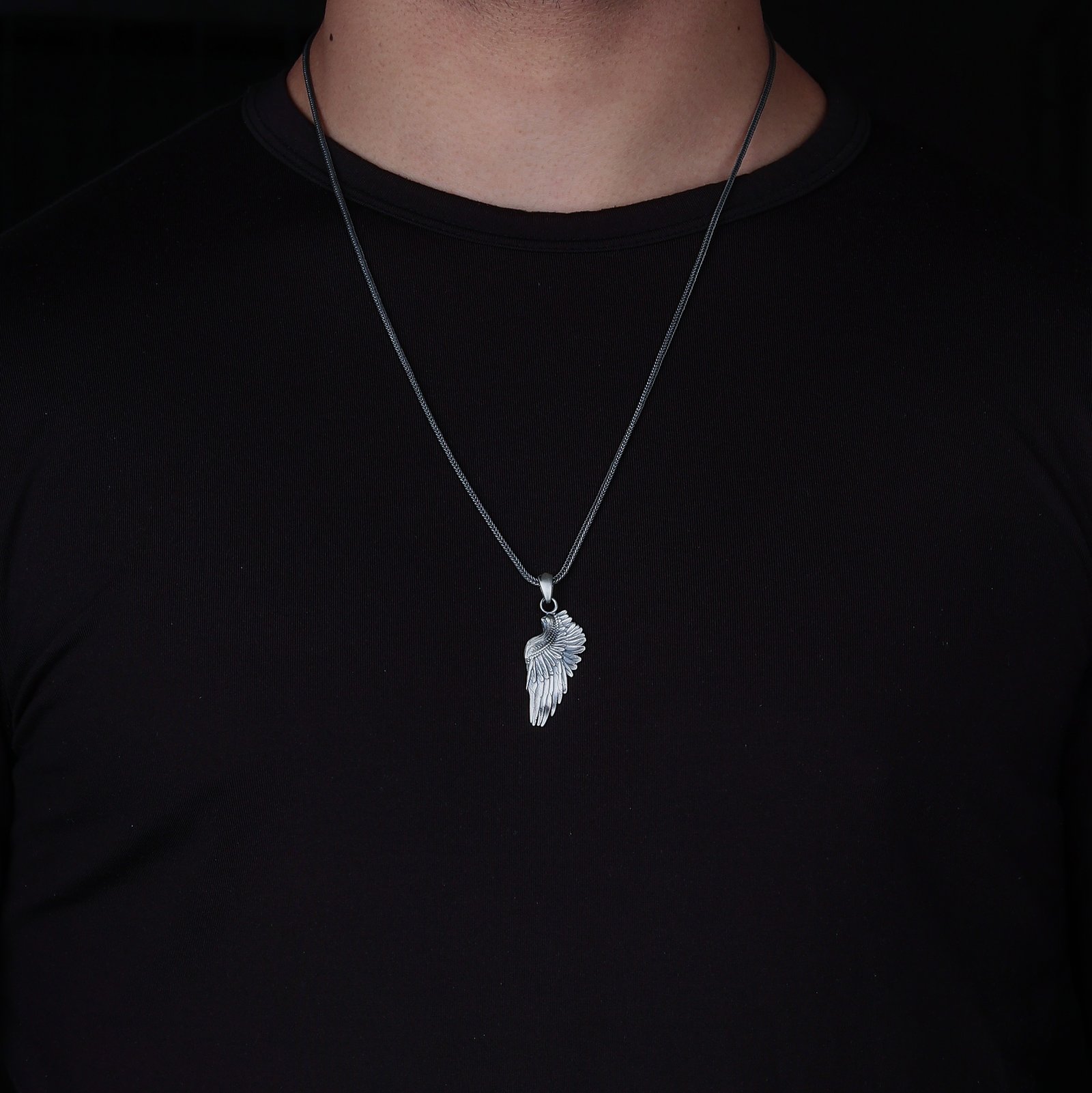 This sterling silver necklace features a beautifully sculpted angel wing, symbolizing protection, hope, and spiritual guidance. The layered feather detailing and antique finish highlight the craftsmanship, giving the pendant a refined and graceful look. Designed as a meaningful accessory, it represents strength, freedom, and inner light. Suitable for daily wear, it blends elegance with symbolic depth. A timeless piece for those who appreciate spiritual or artistic designs.