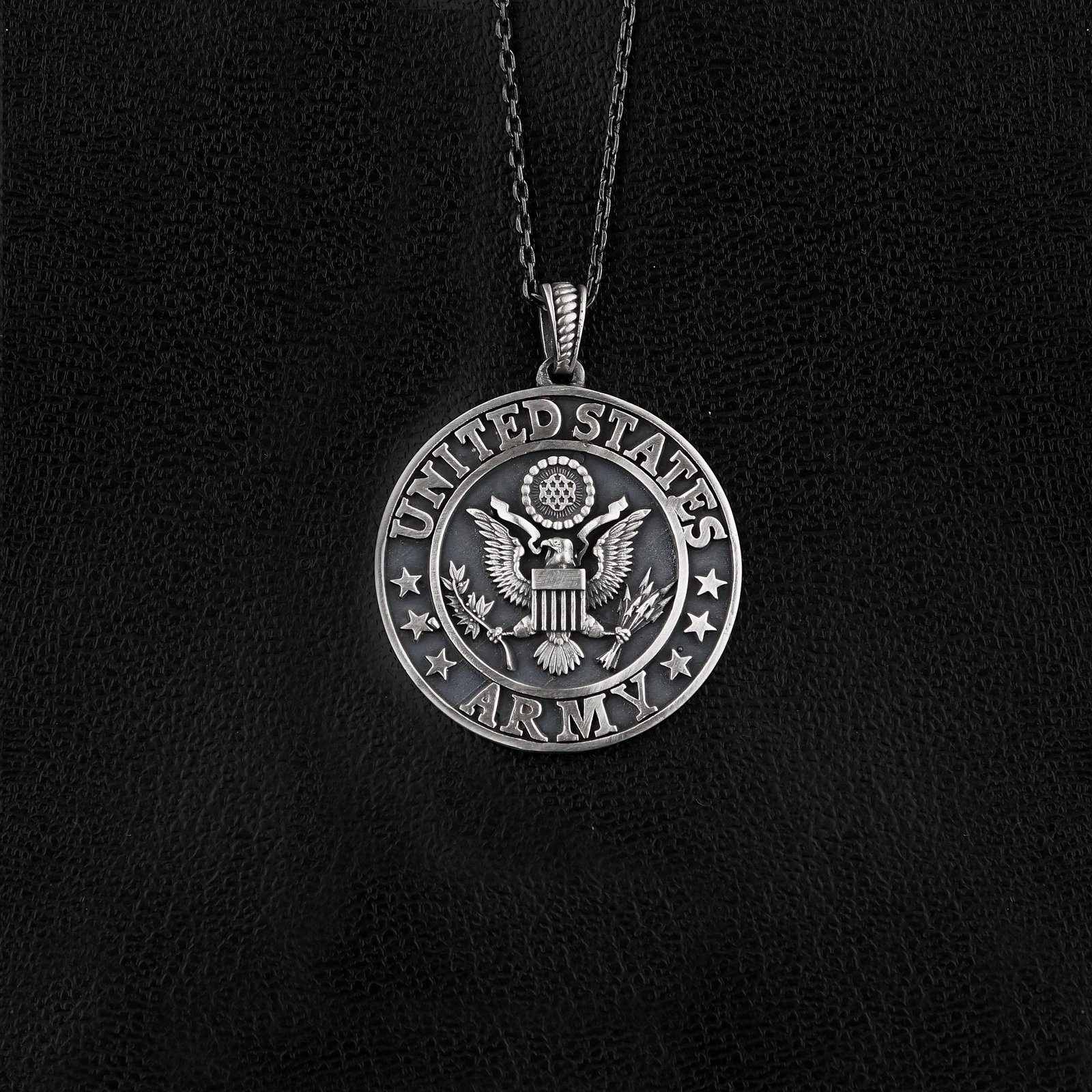 Army Eagle Emblem Men’s Necklace Honor Symbol Pendant Antique Silver