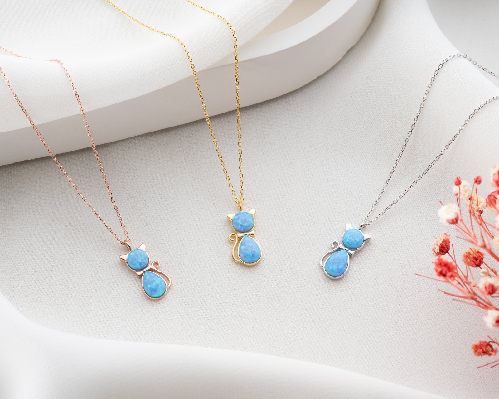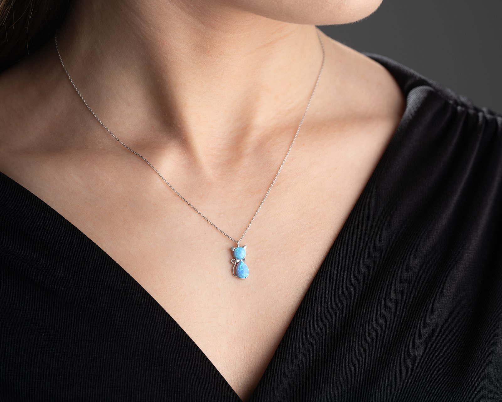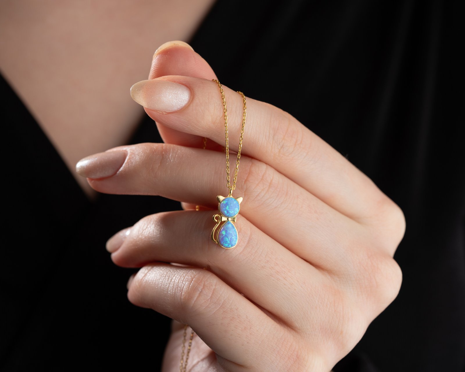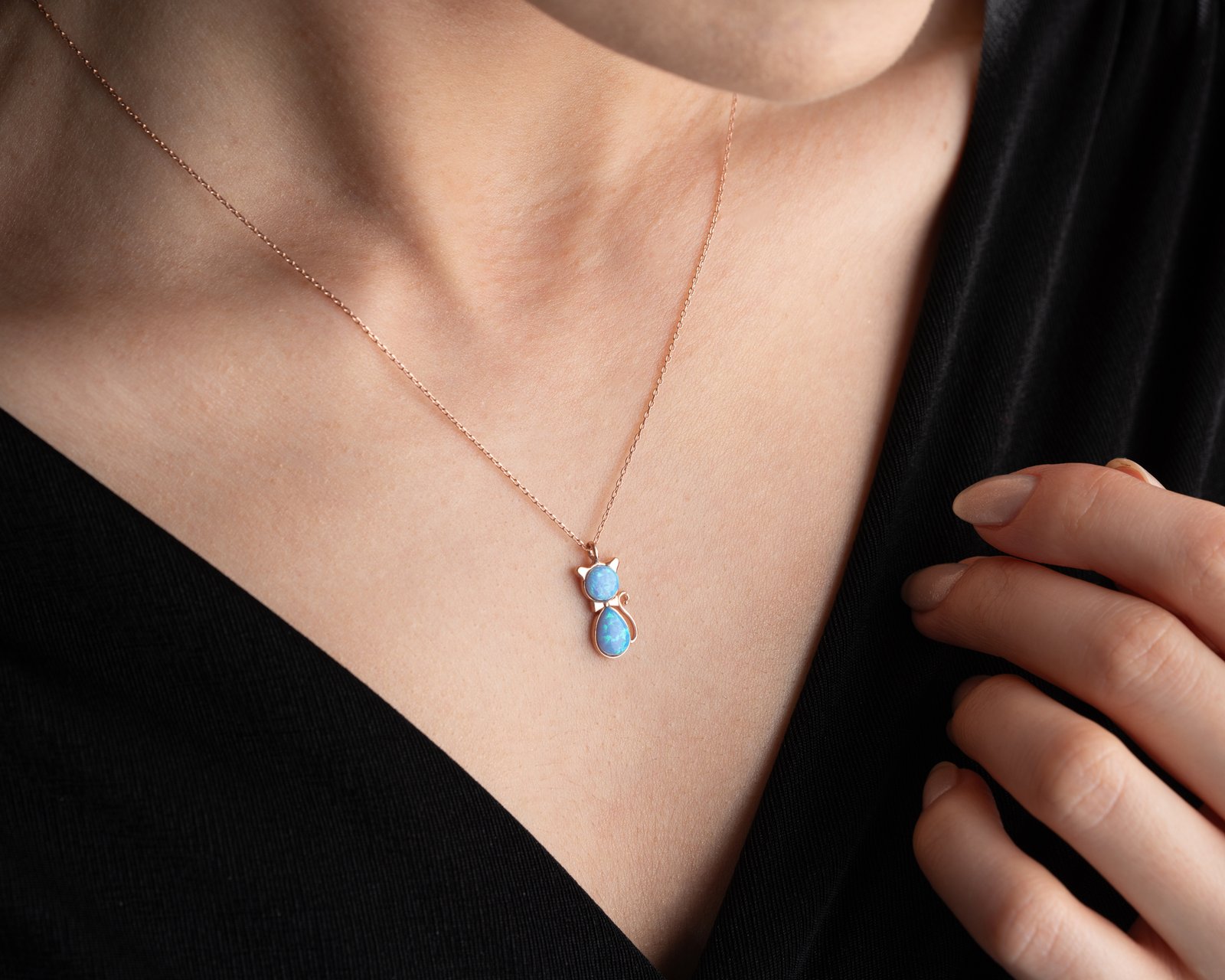 Blue Gemstone Cat Pendant Necklace Elegant Minimalist Design