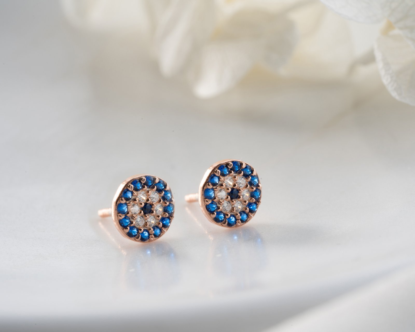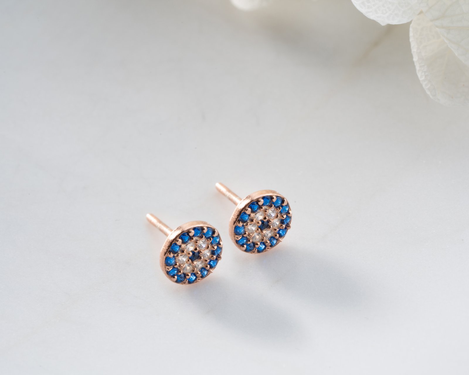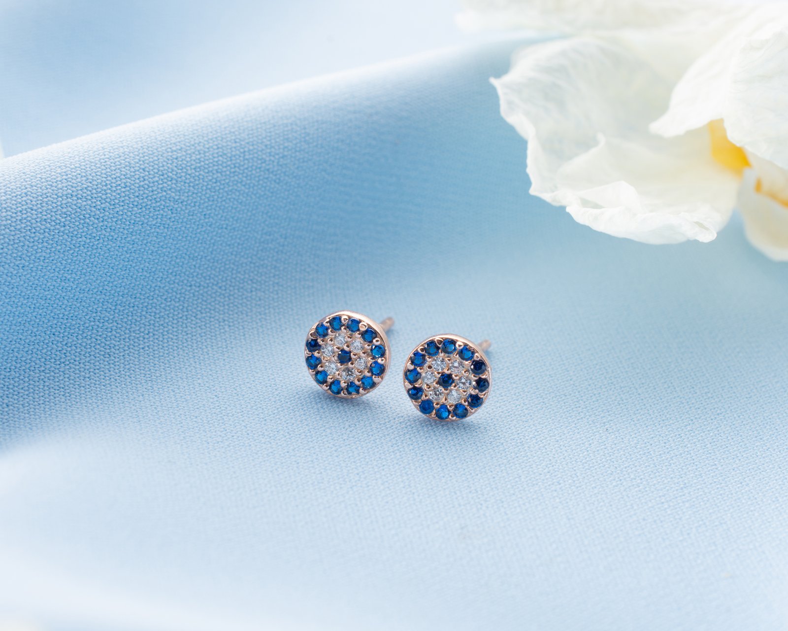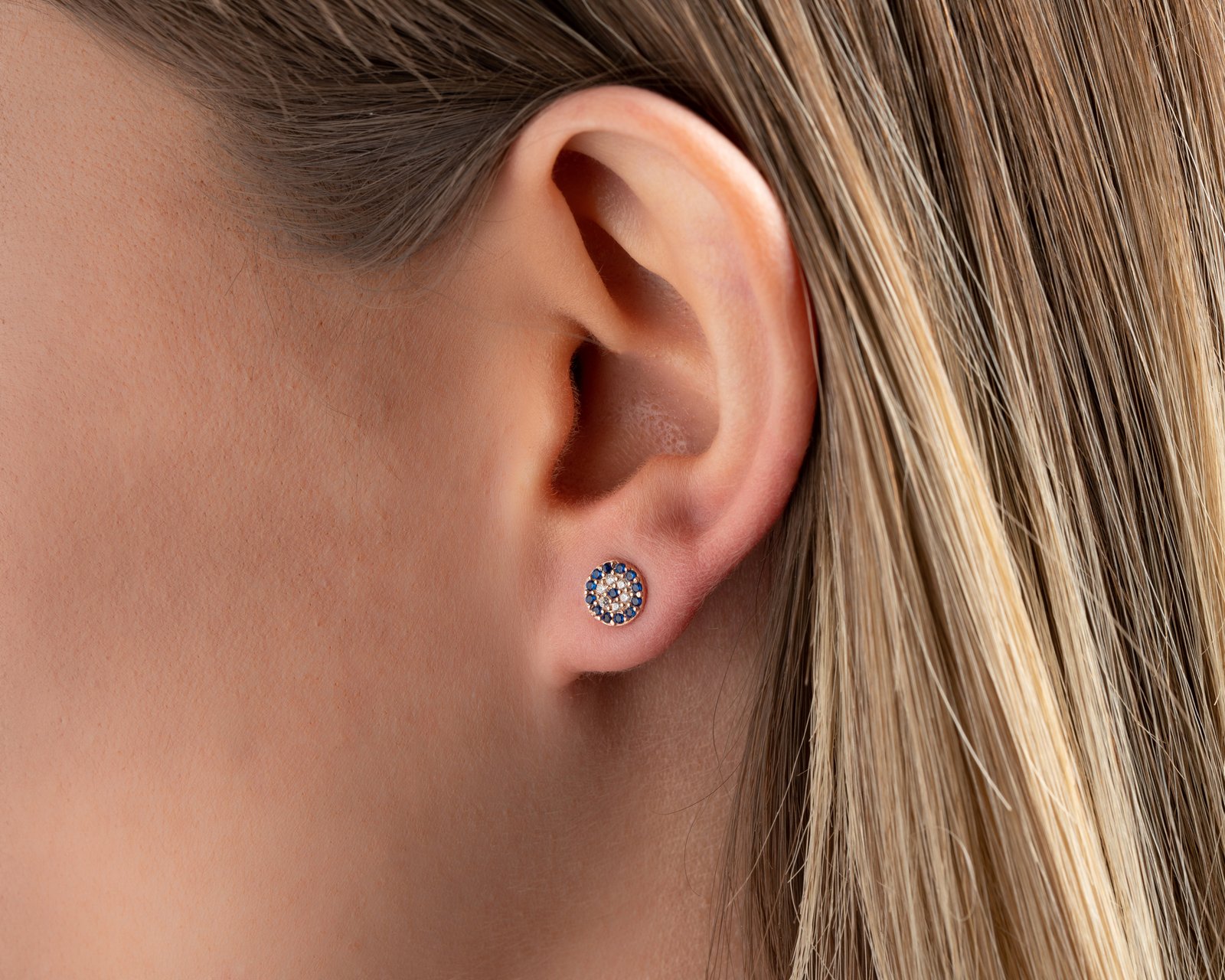 These elegant stud earrings feature a sparkling combination of deep blue and clear white crystals, arranged in a refined circular pattern. Designed for women who appreciate timeless elegance, these earrings offer a brilliant shine suitable for both everyday wear and special occasions. Their lightweight and comfortable structure makes them ideal for long use while adding a sophisticated touch to any outfit.