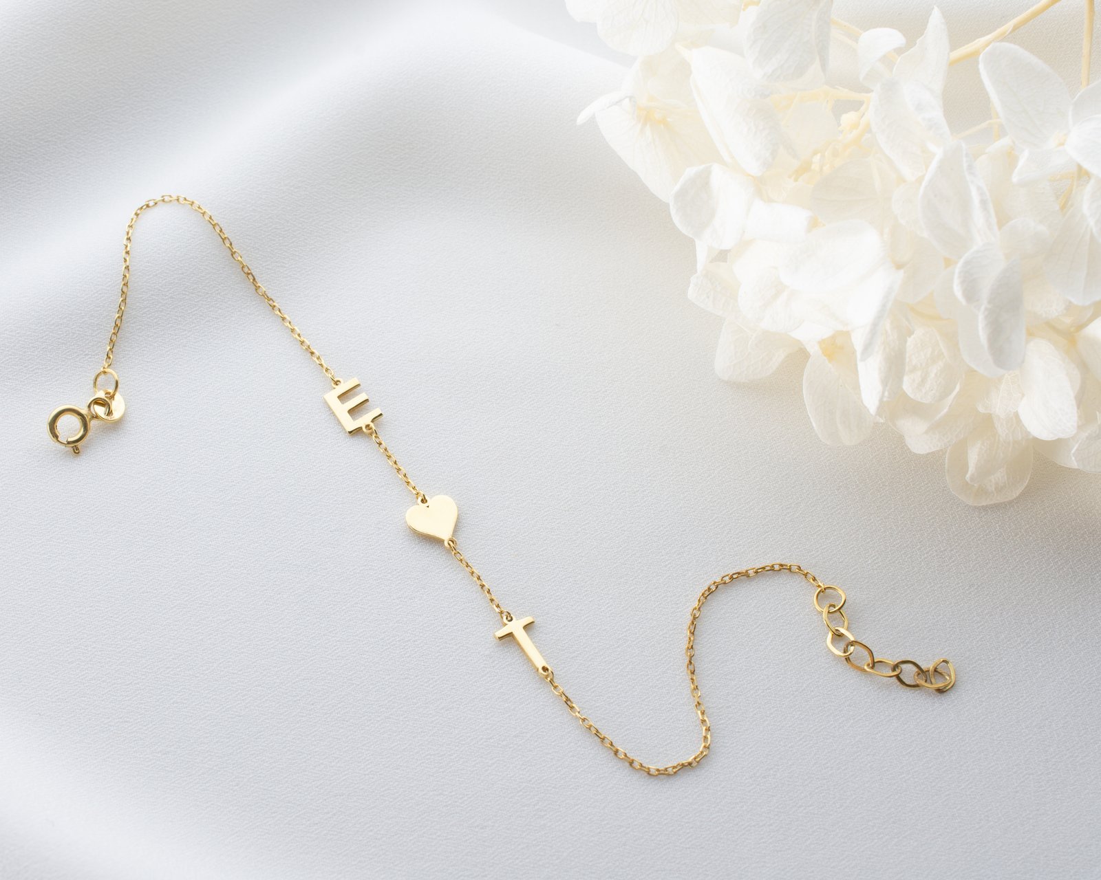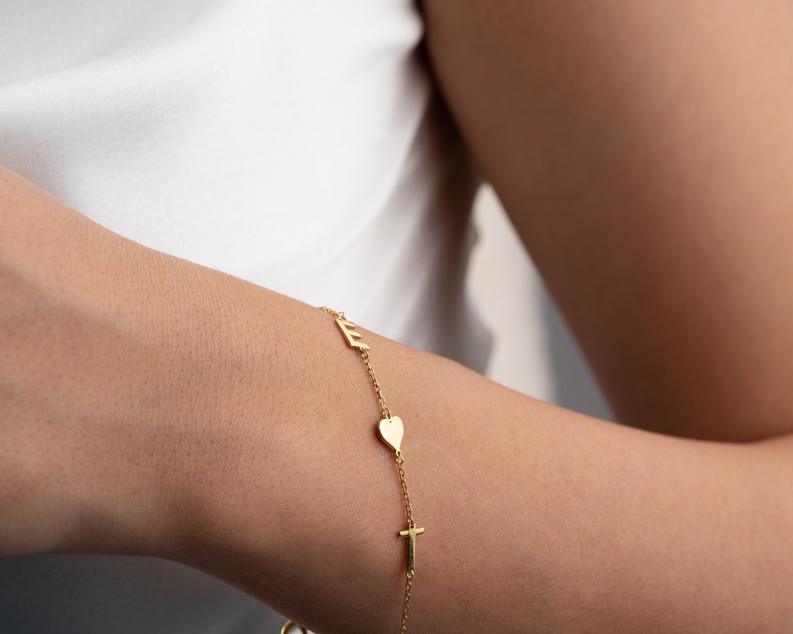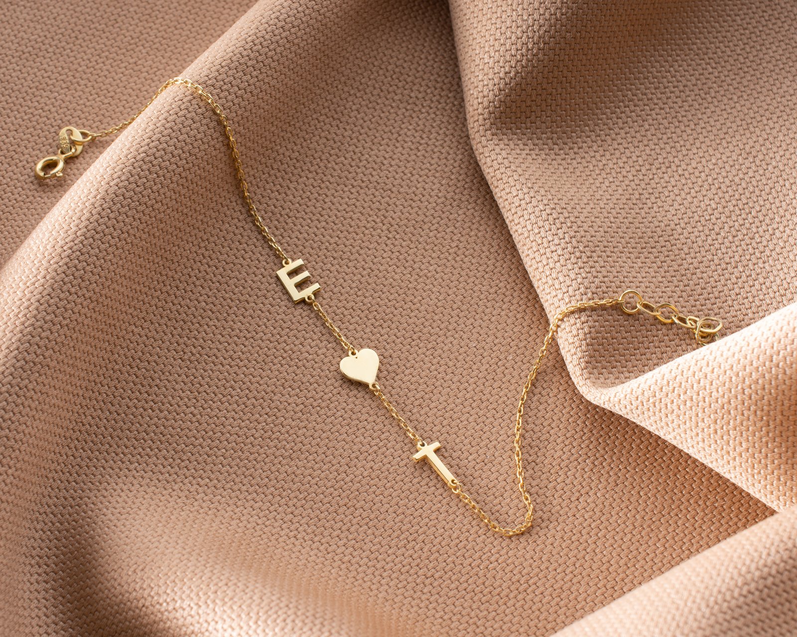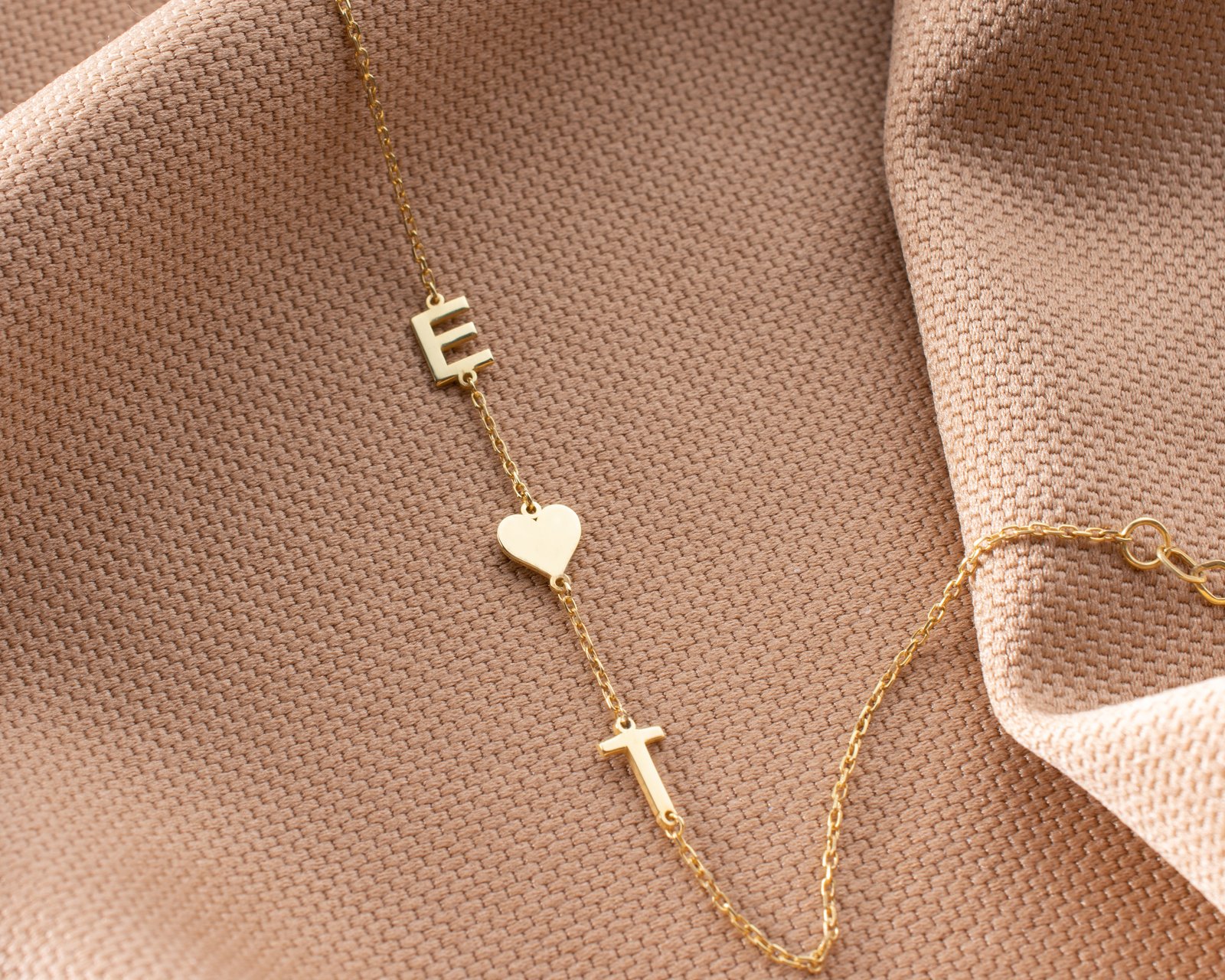 This elegant gold bracelet features the initials “E” and “T” connected with a heart symbol, representing love, unity, and meaningful relationships. Its minimalist chain and polished finish make it ideal for daily wear or gifting on special occasions. Perfect for women who appreciate subtle yet emotionally expressive jewelry.
