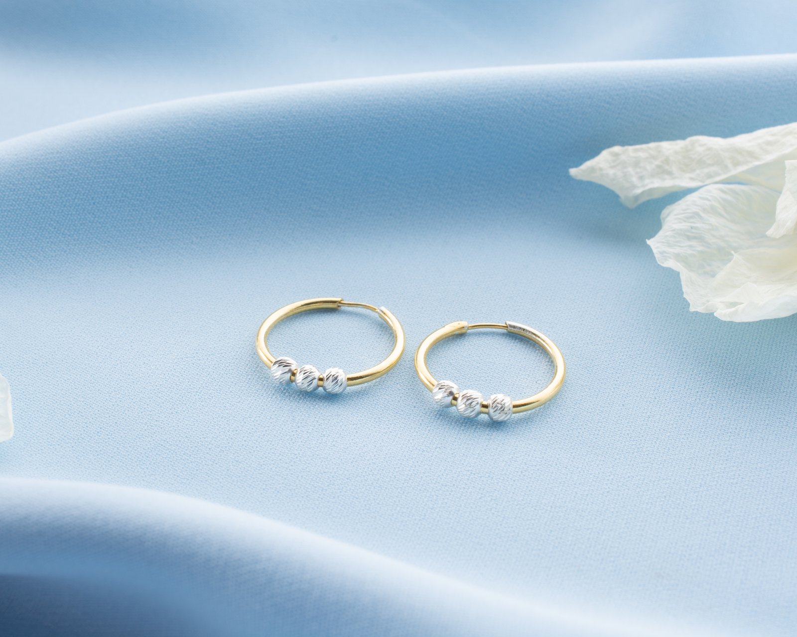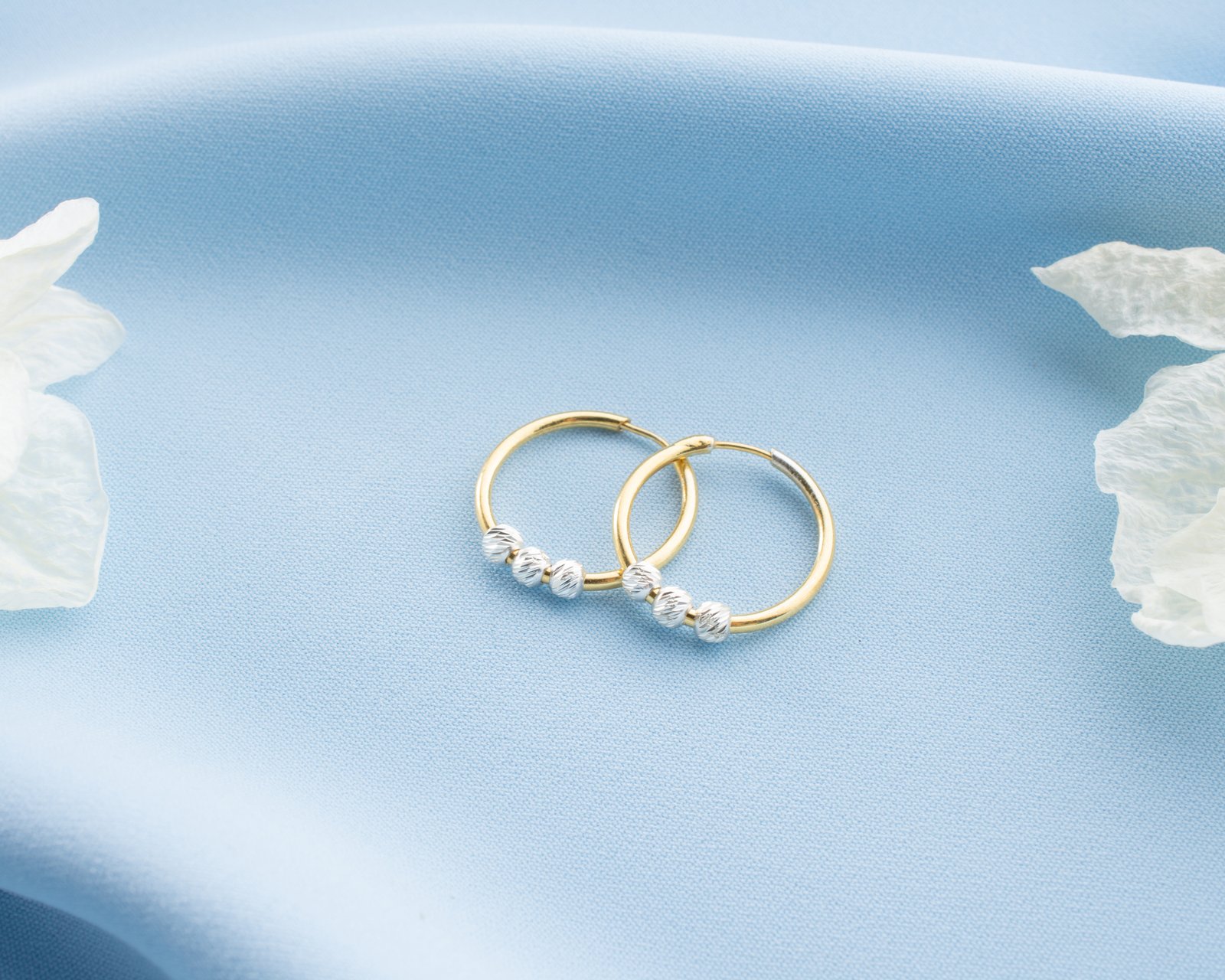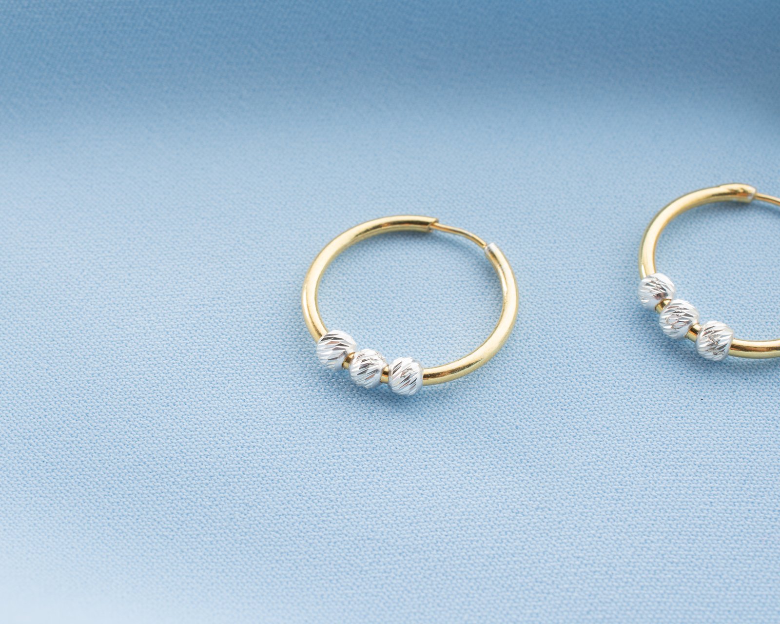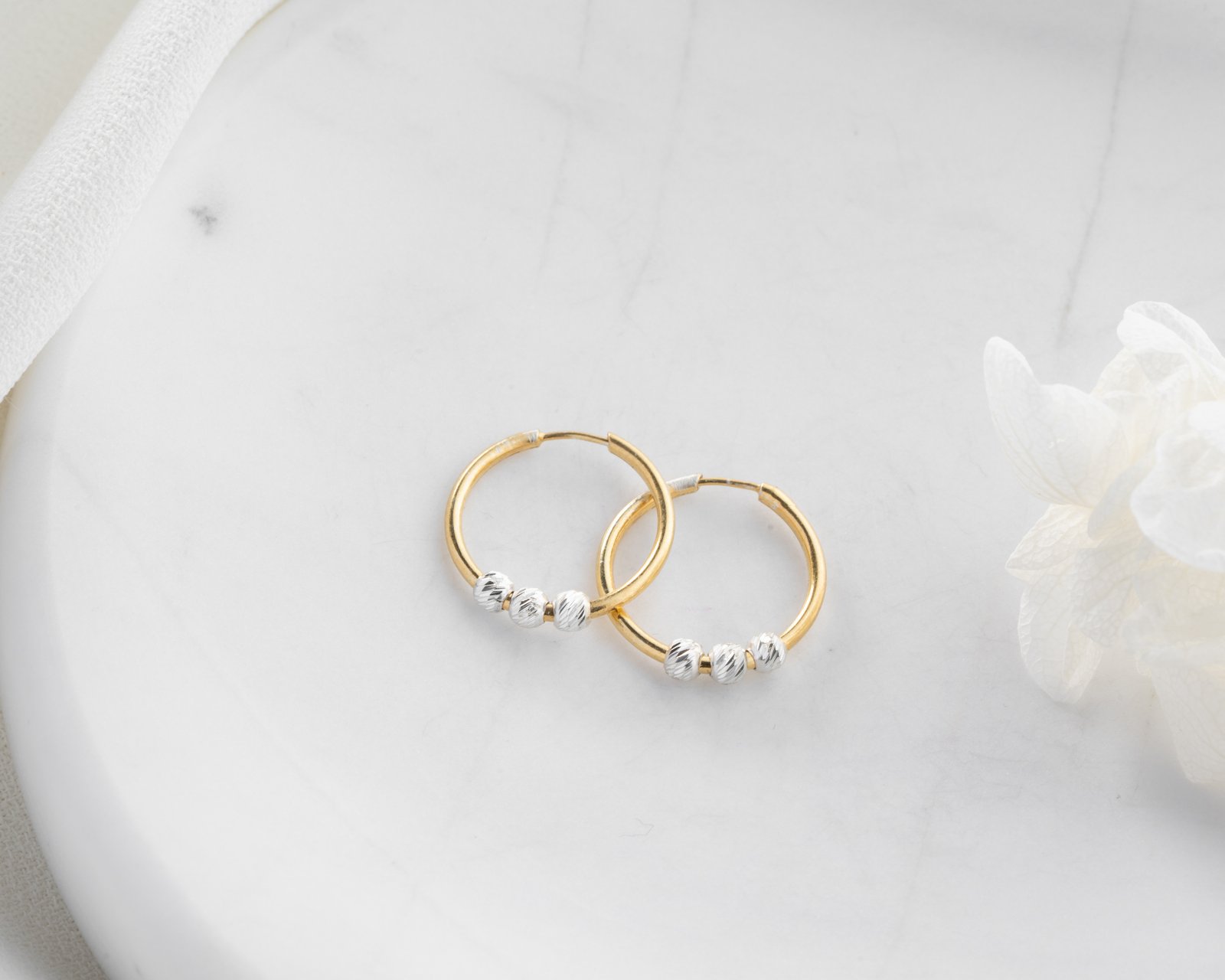 Gold-Plated Hoop Earrings with Textured Silver Beads