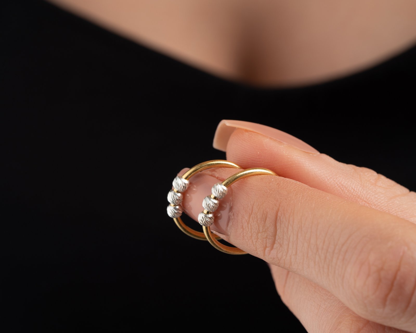 Elevate your everyday style with these beautifully crafted gold-plated hoop earrings featuring three textured silver beads. Designed to blend modern sophistication with timeless charm, these hoops offer a unique two-tone aesthetic that complements a wide range of looks. The lightweight structure ensures comfortable daily wear, while the polished gold finish adds a luxurious shine. Perfect for both casual outfits and special occasions, these earrings bring a refined touch to any jewelry collection.