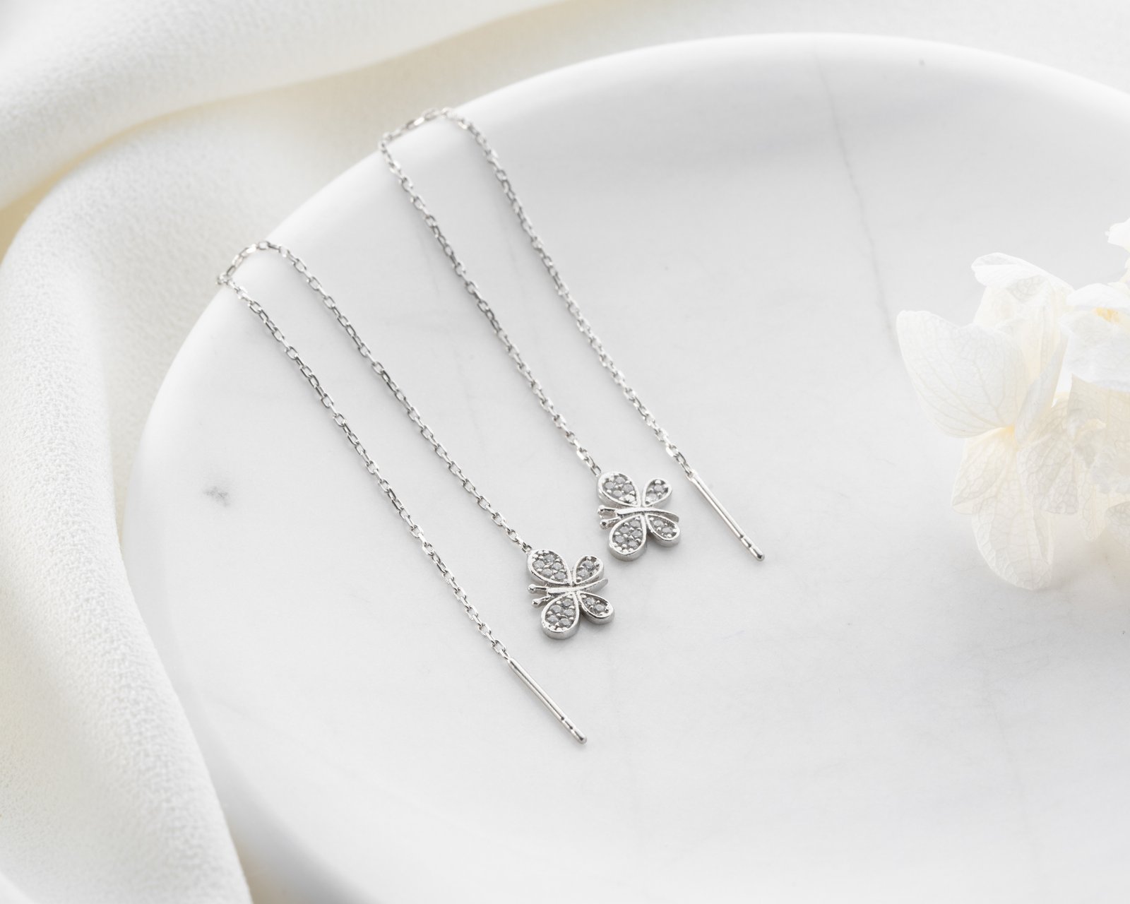 Sterling Silver Clover Threader Earrings
