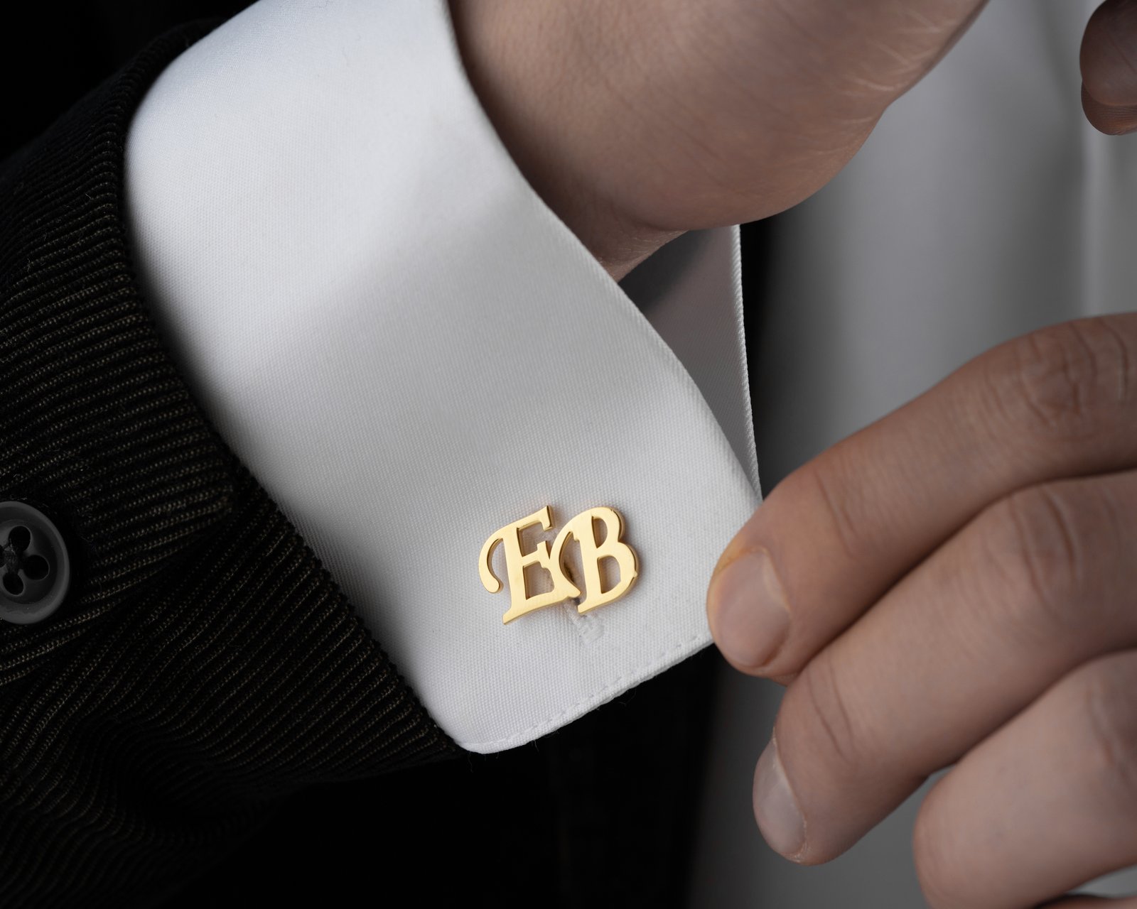 This men’s cufflinks feature interlocked gold tone initials with a polished and sculpted finish. Designed for custom letters added after ordering, the intertwined form creates a strong and elegant visual identity. Ideal for weddings, formal events, or meaningful gifting, these cufflinks reflect connection, identity, and refined taste. The gold tone finish enhances their premium and confident appearance.
