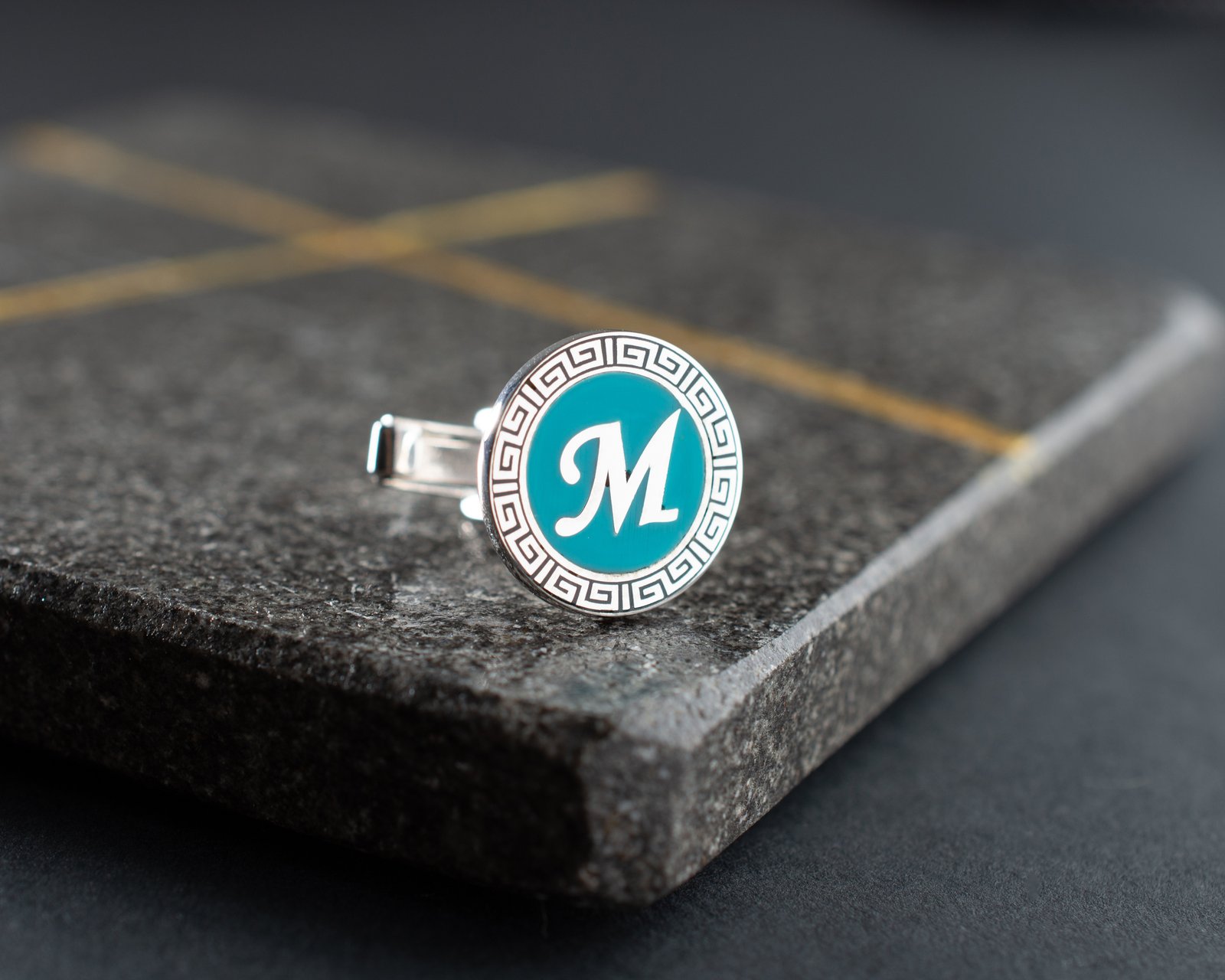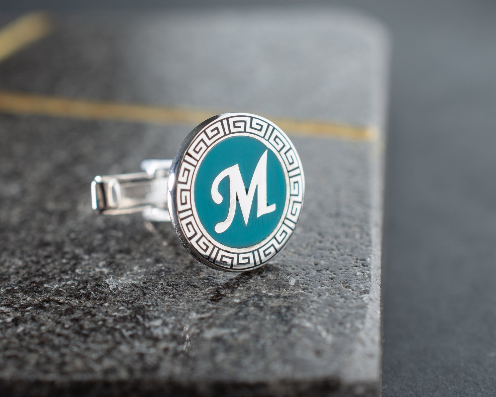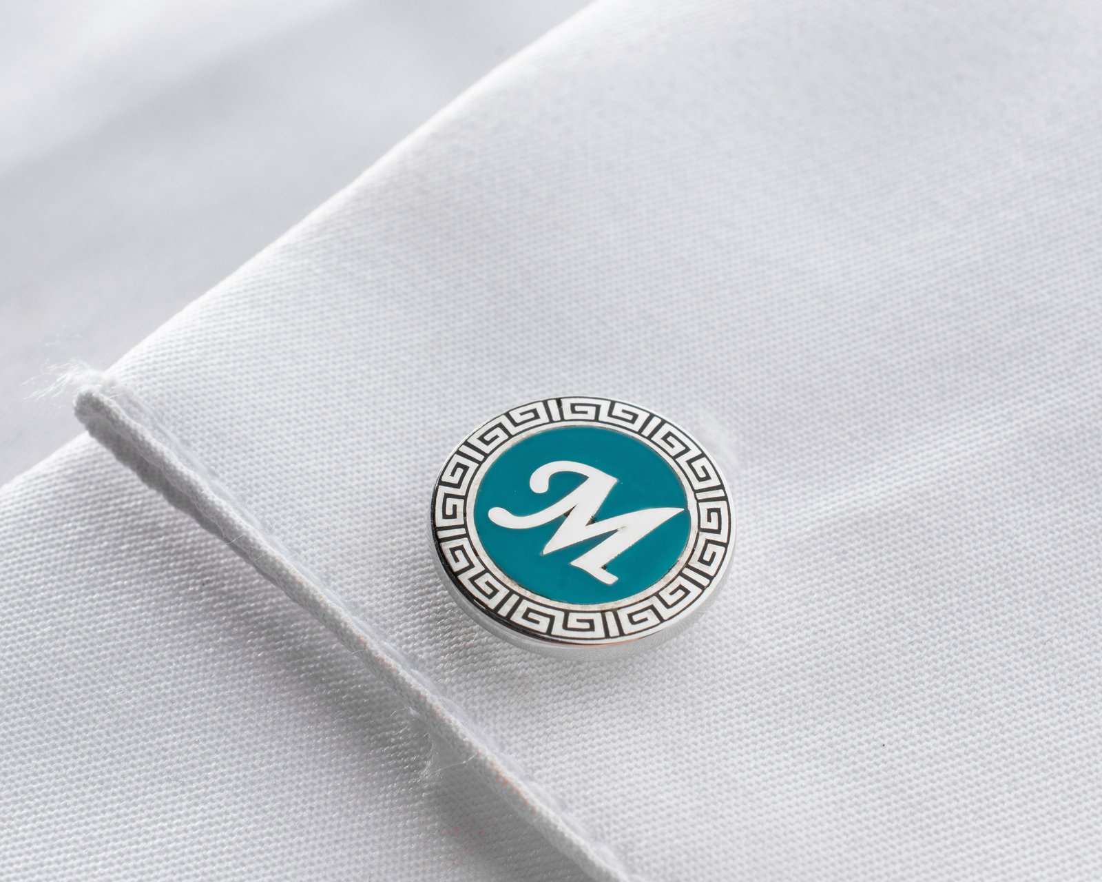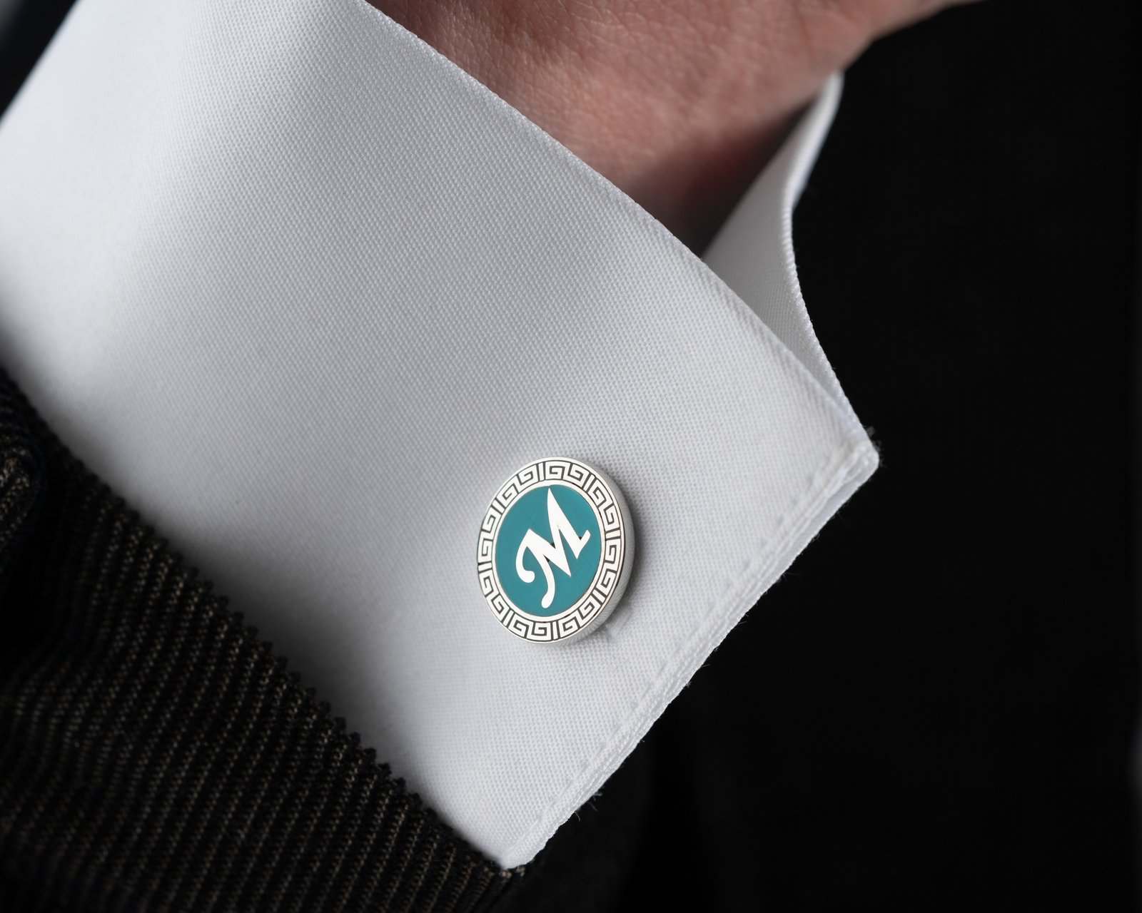 Personalized Men’s Cufflinks Round Enamel Initial Design