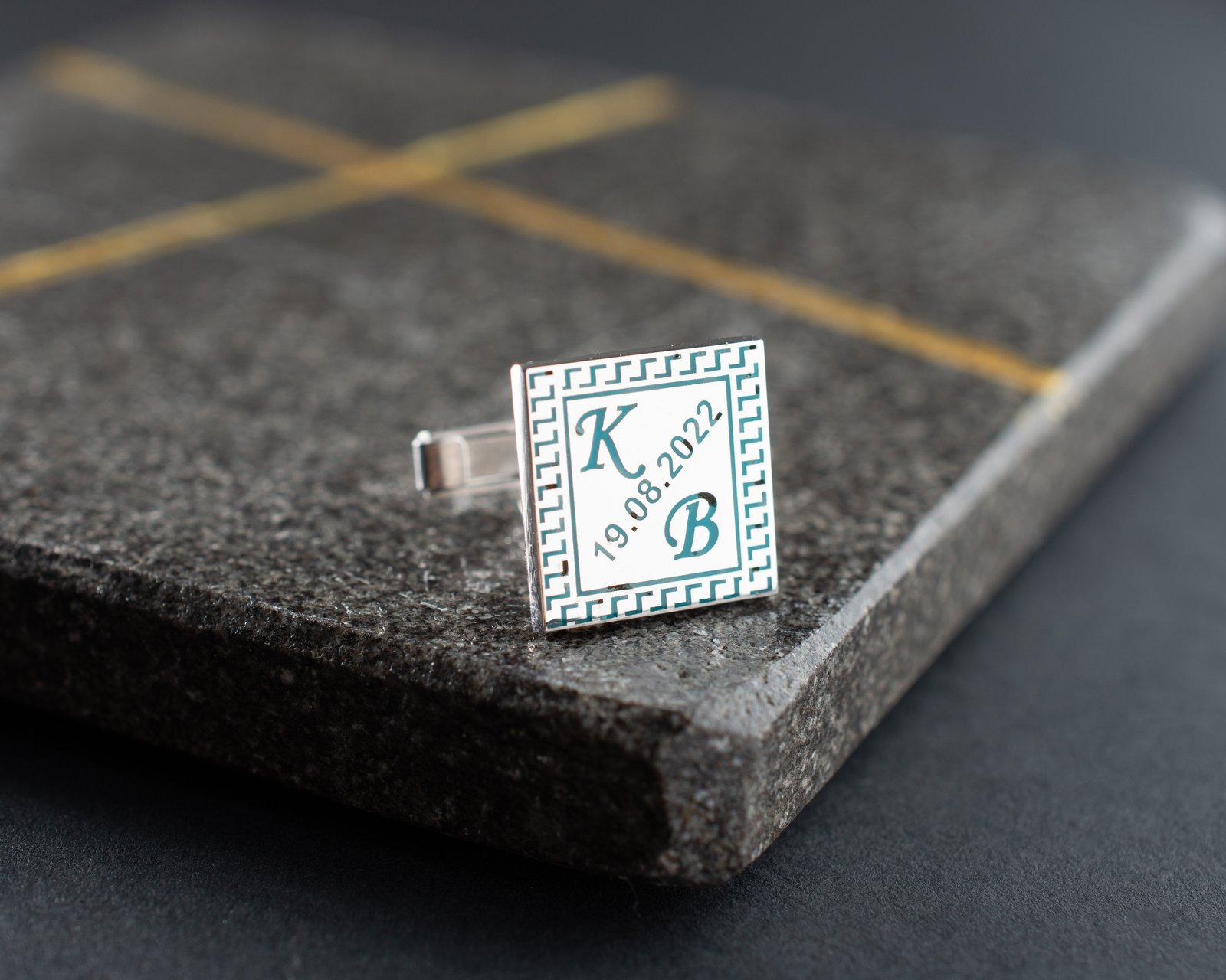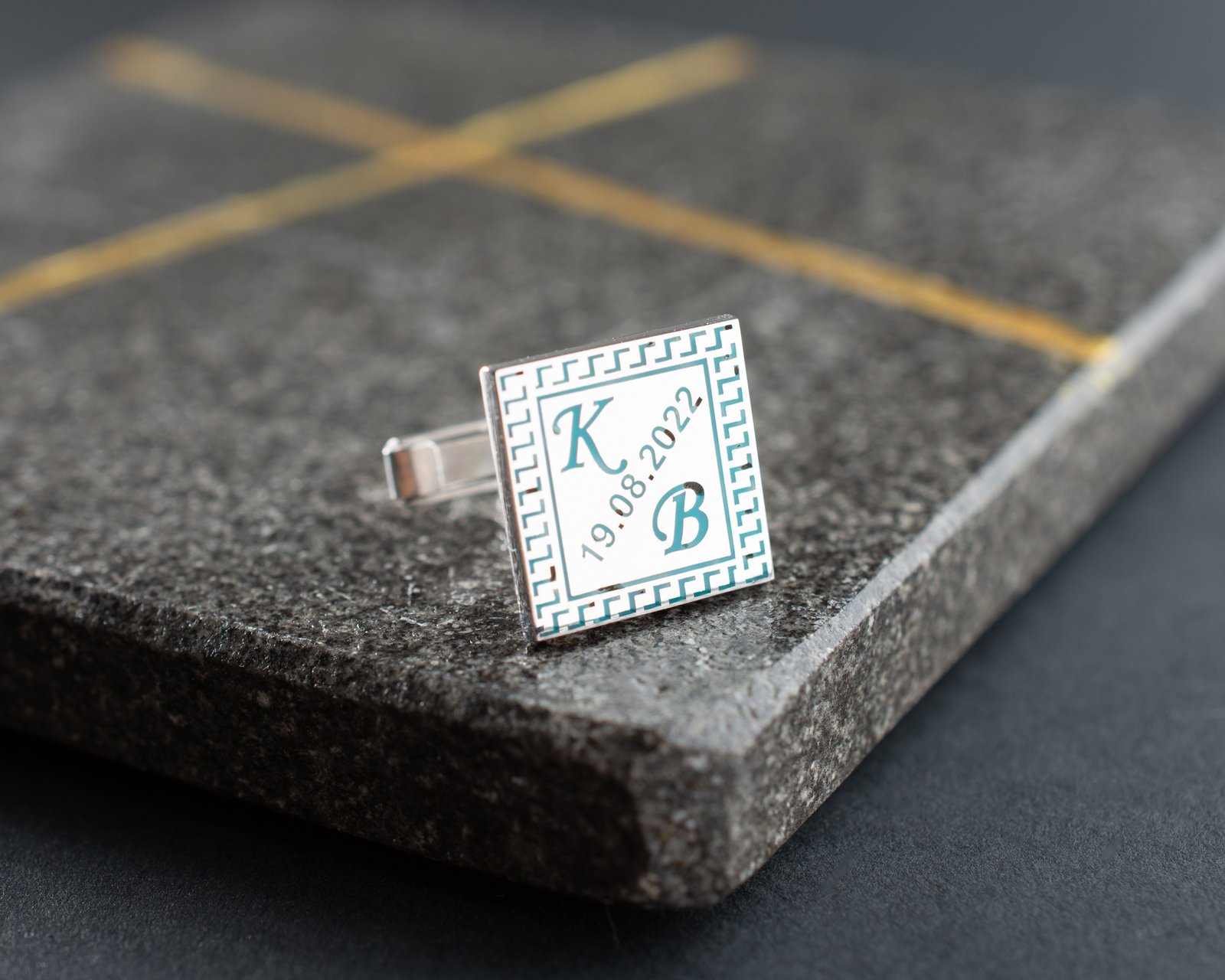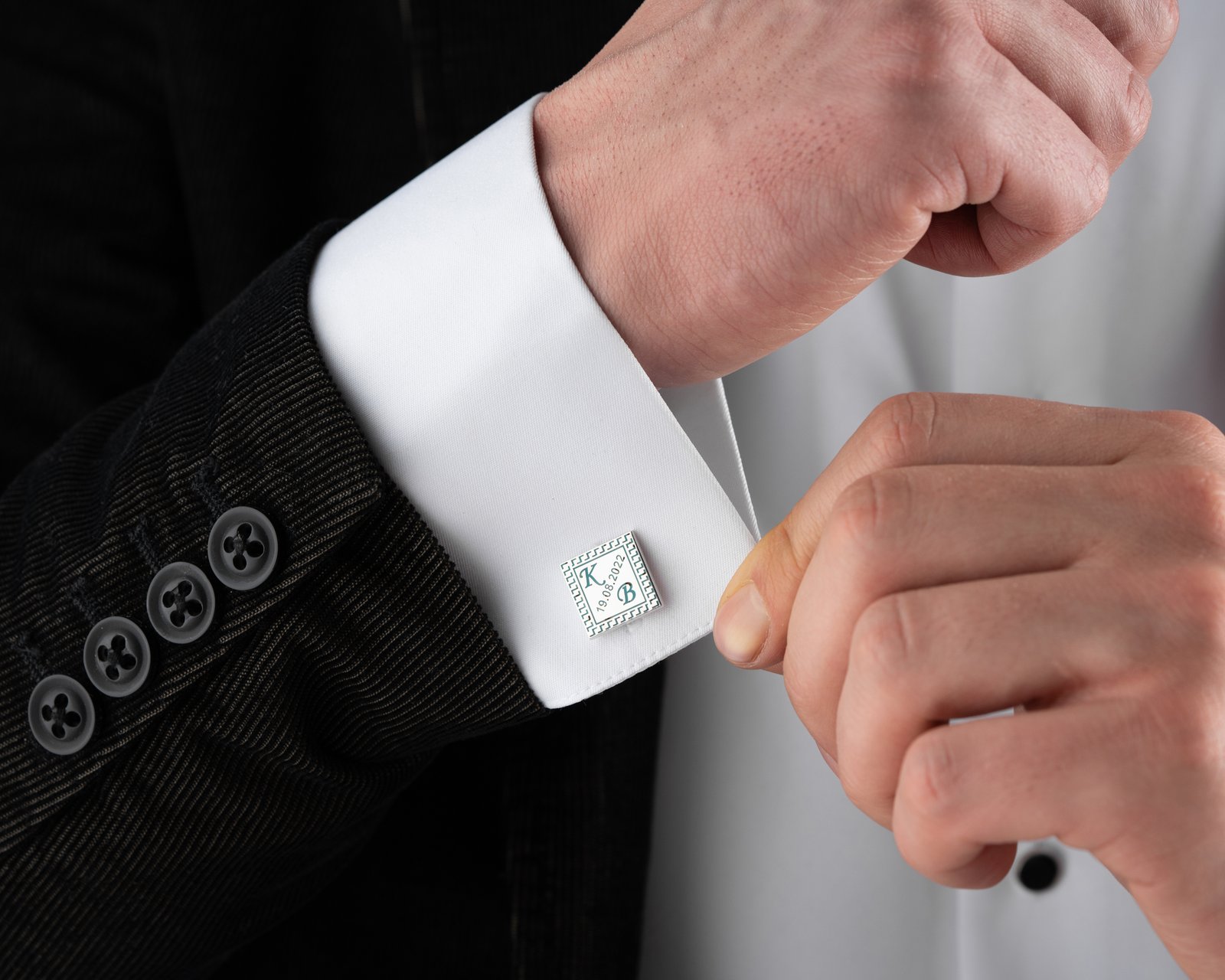 This men’s cufflinks feature a structured square design with space for initials and a meaningful date engraved after ordering. The decorative border and balanced layout create a refined and elegant appearance, finished in polished silver. Customization allows this piece to commemorate weddings, anniversaries, or special milestones. Designed for formal occasions and premium gifting, these cufflinks reflect attention to detail, emotional value, and classic sophistication.