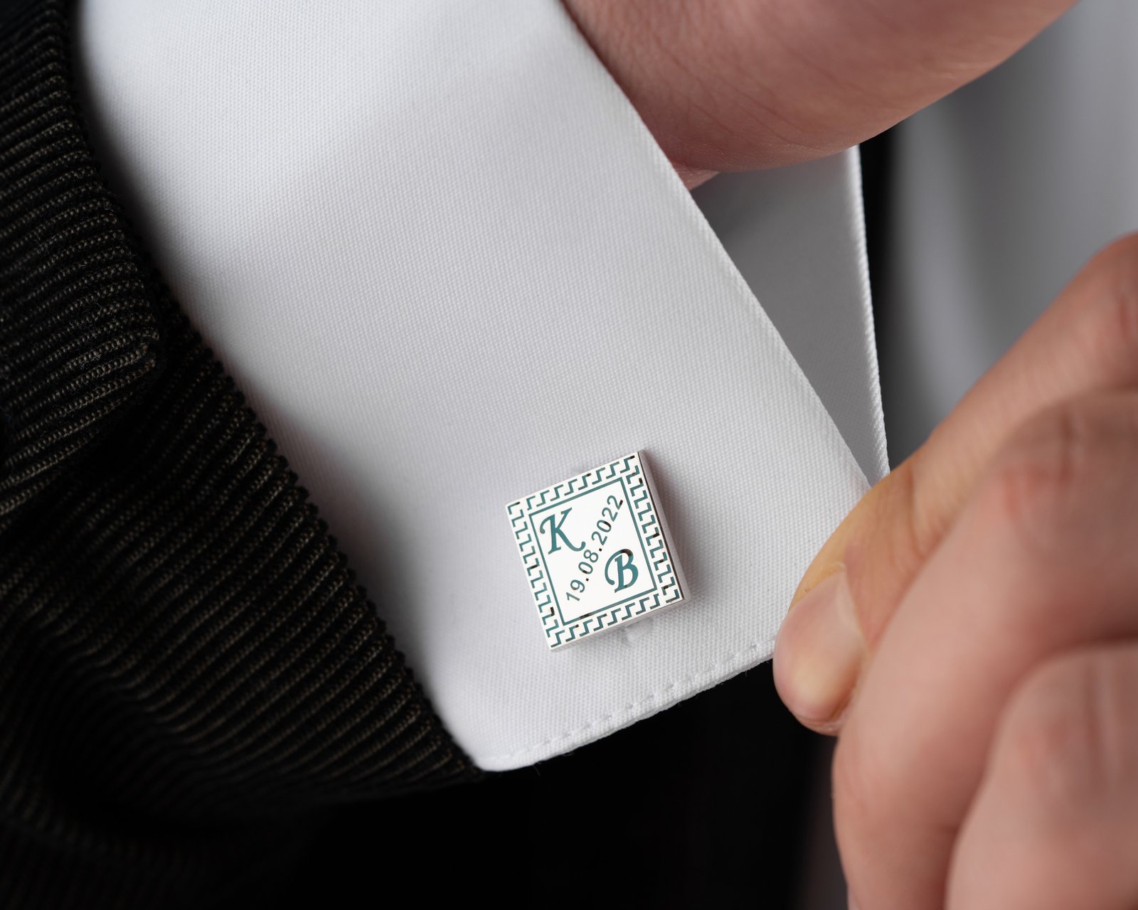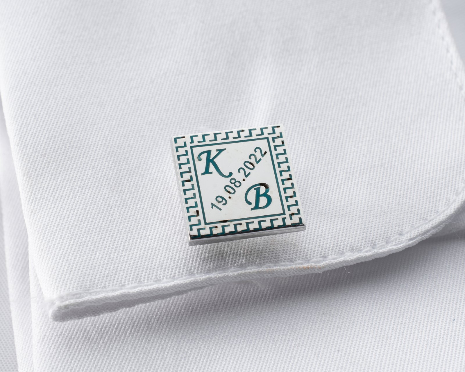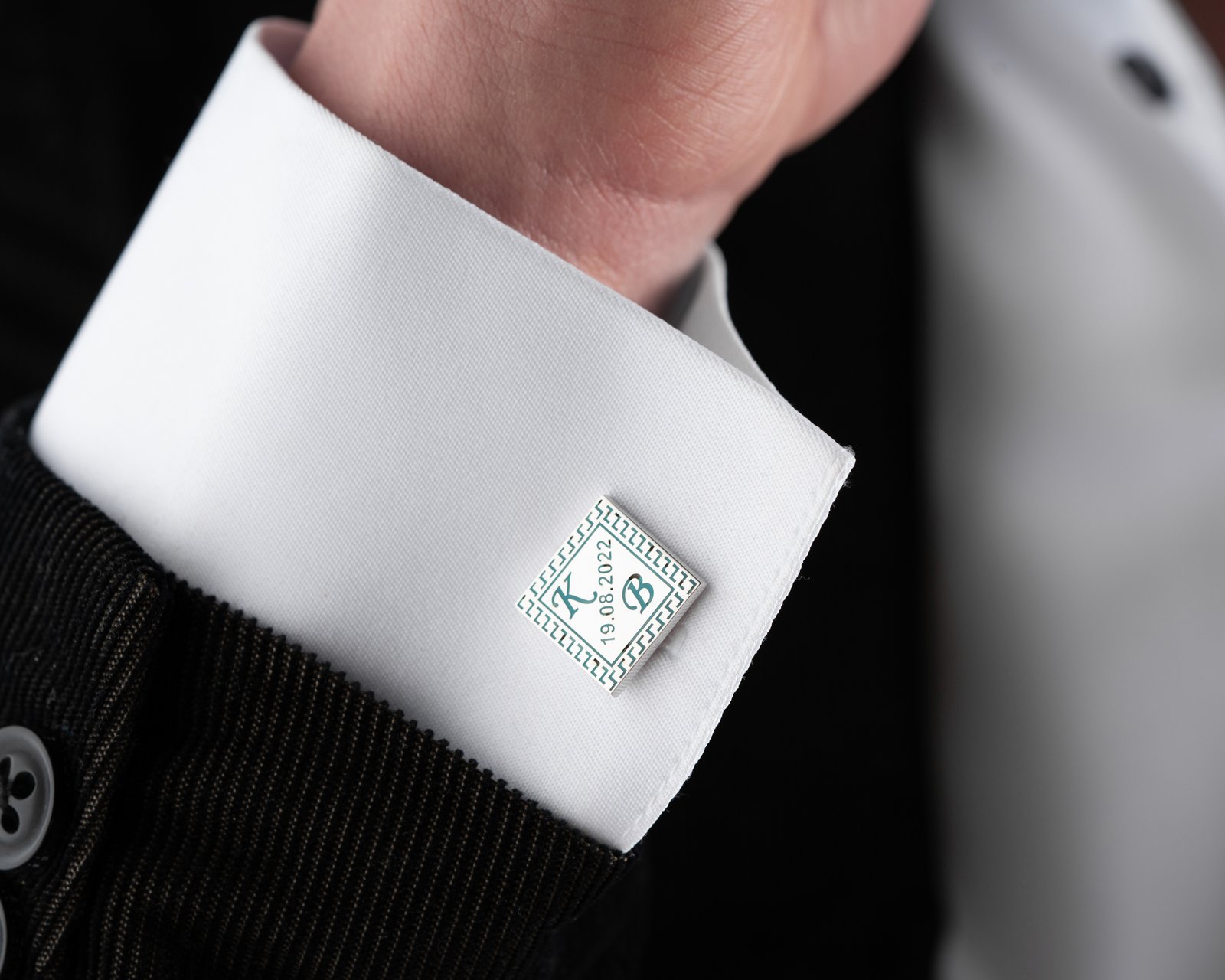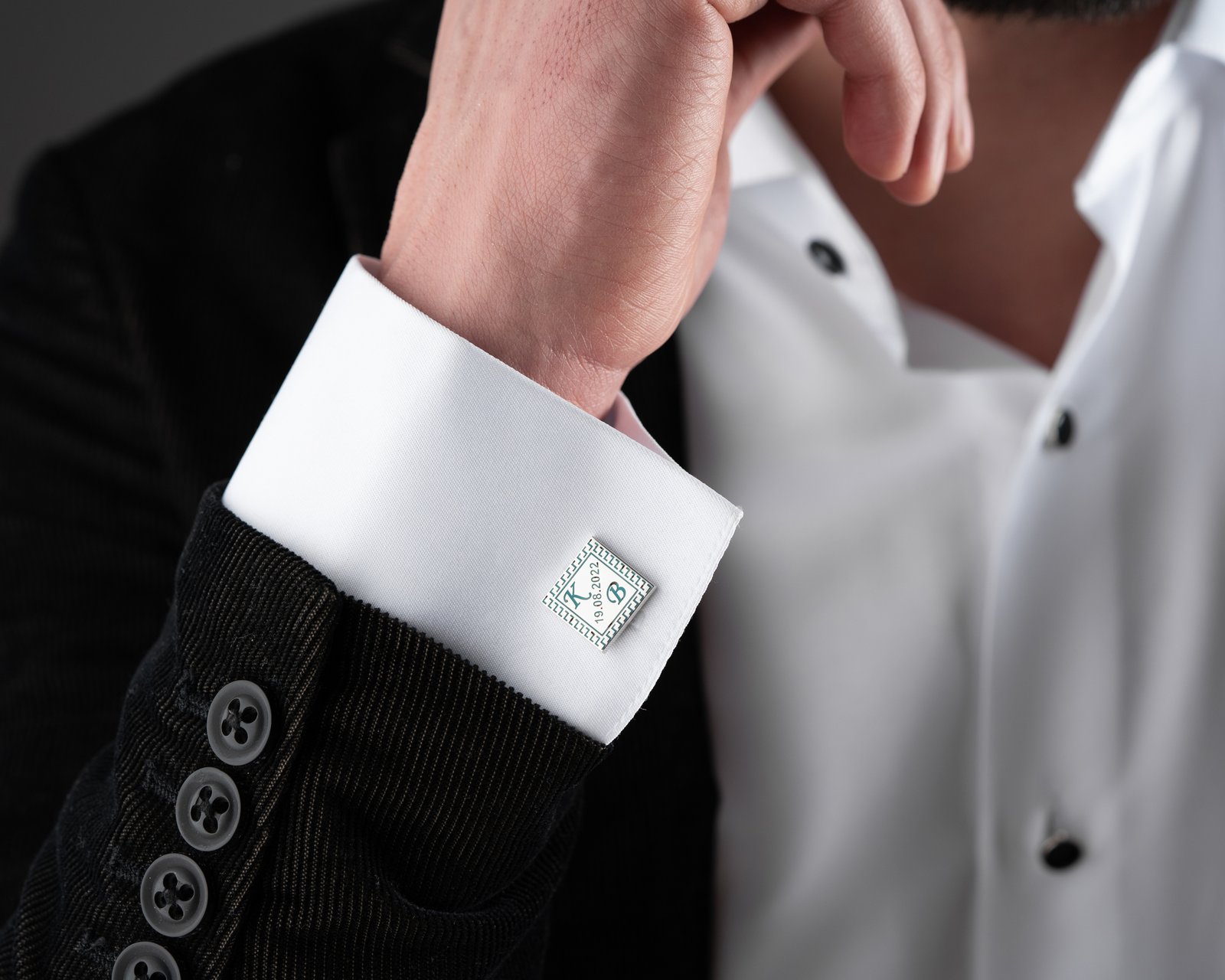 This men’s cufflinks feature a structured square design with space for initials and a meaningful date engraved after ordering. The decorative border and balanced layout create a refined and elegant appearance, finished in polished silver. Customization allows this piece to commemorate weddings, anniversaries, or special milestones. Designed for formal occasions and premium gifting, these cufflinks reflect attention to detail, emotional value, and classic sophistication.