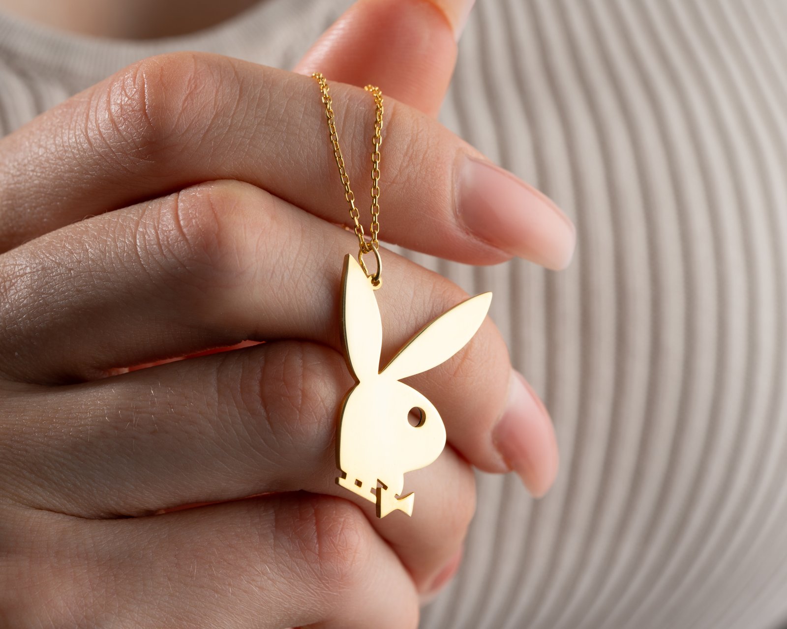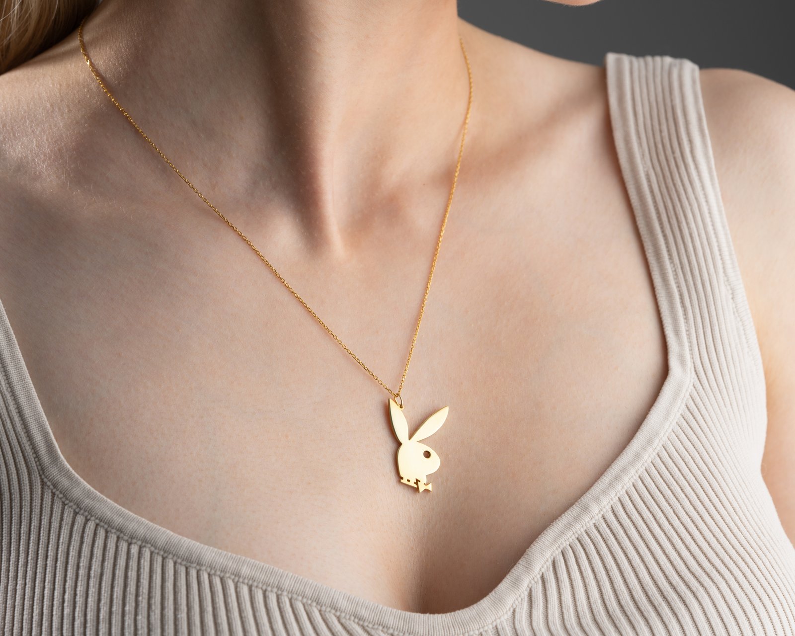 A bold and iconic gold Playboy Bunny pendant for confident everyday style.