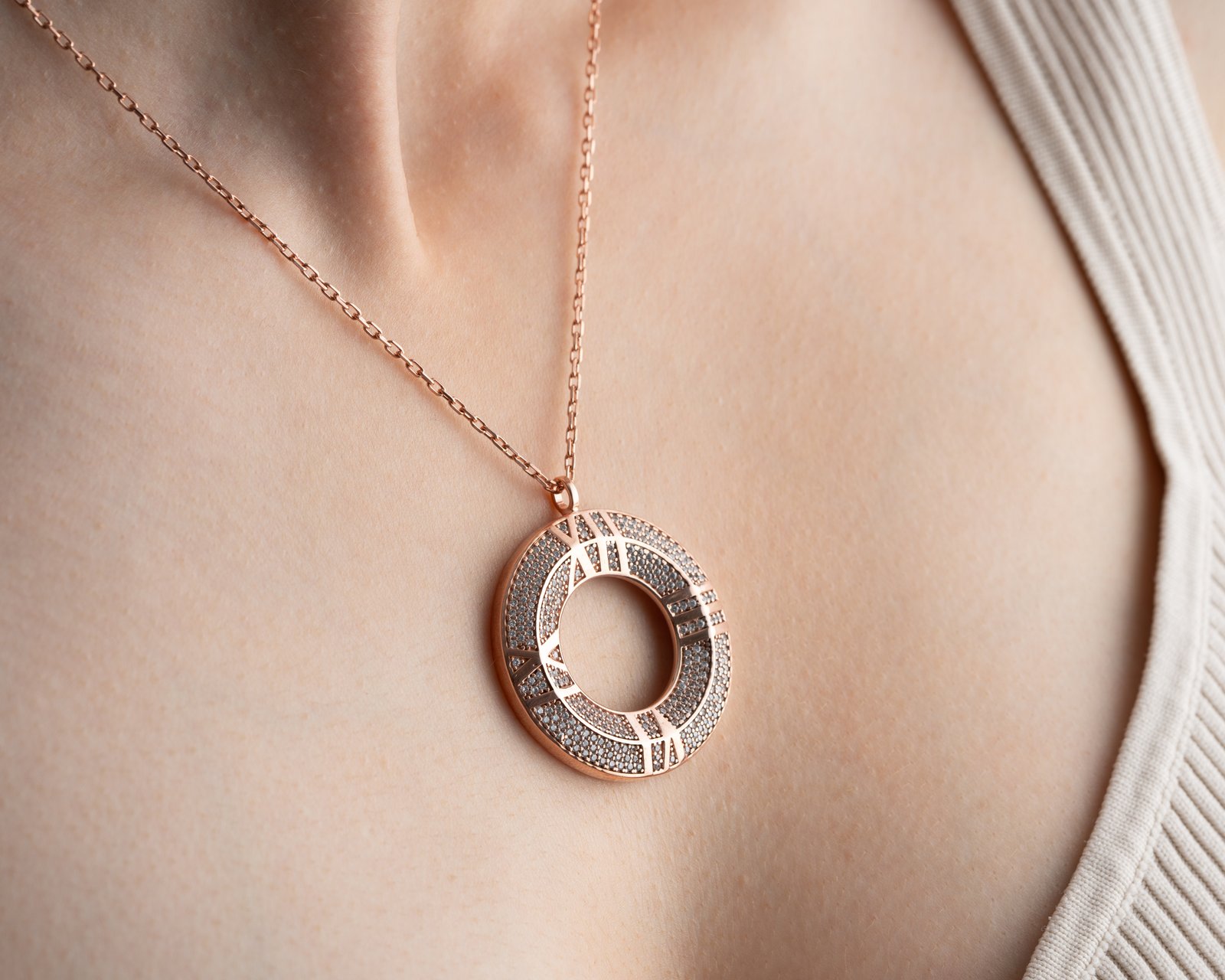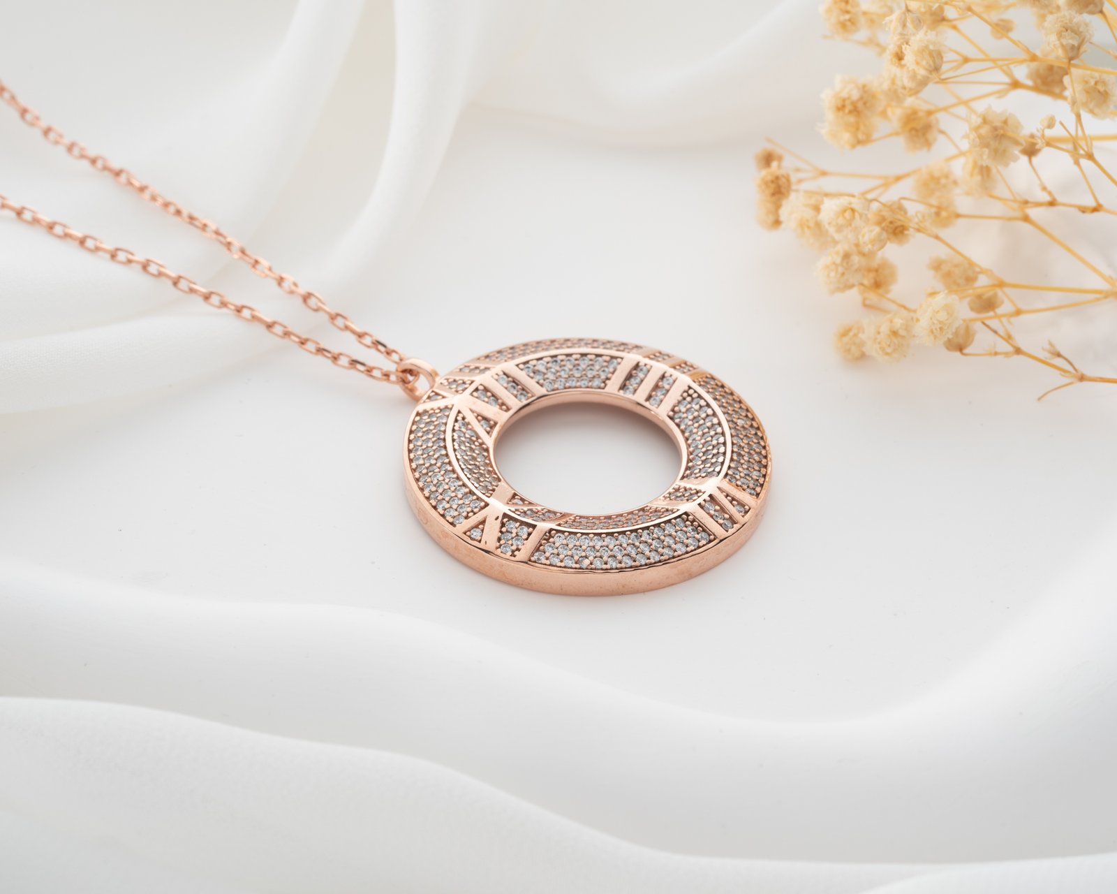 Our Roman Numeral Circle Pendant Necklace blends elegance and symbolism with a refined modern touch. The circular form represents eternity, while the engraved Roman numerals highlight the passage of time and meaningful moments. Enhanced with shimmering stones and a polished finish, this piece stands out as a sophisticated everyday accessory. Perfect for gifting or personal wear, it delivers a luxurious feel and versatile charm suitable for all styles.