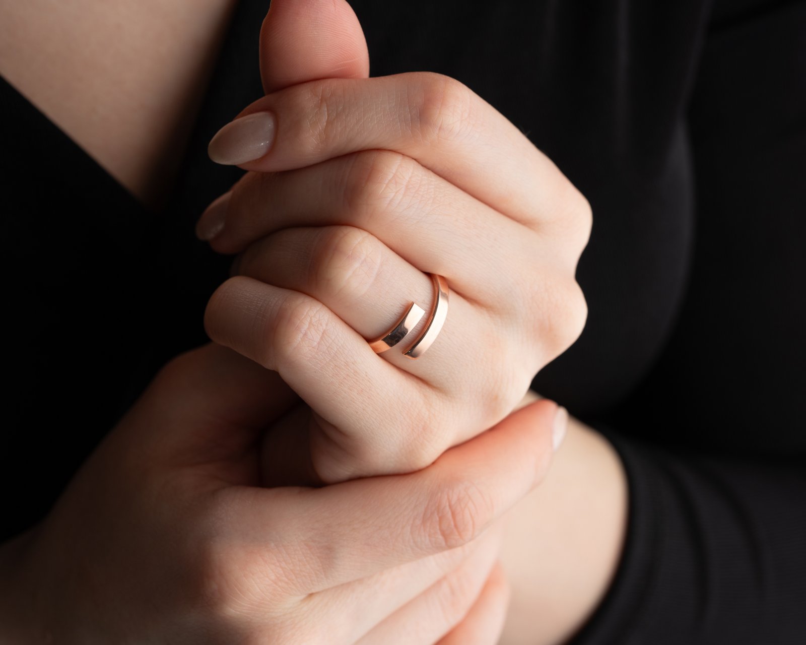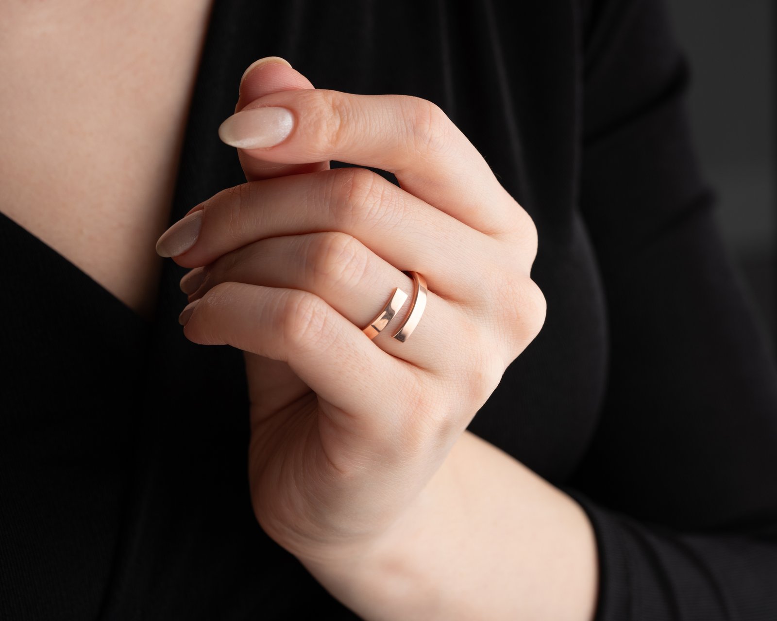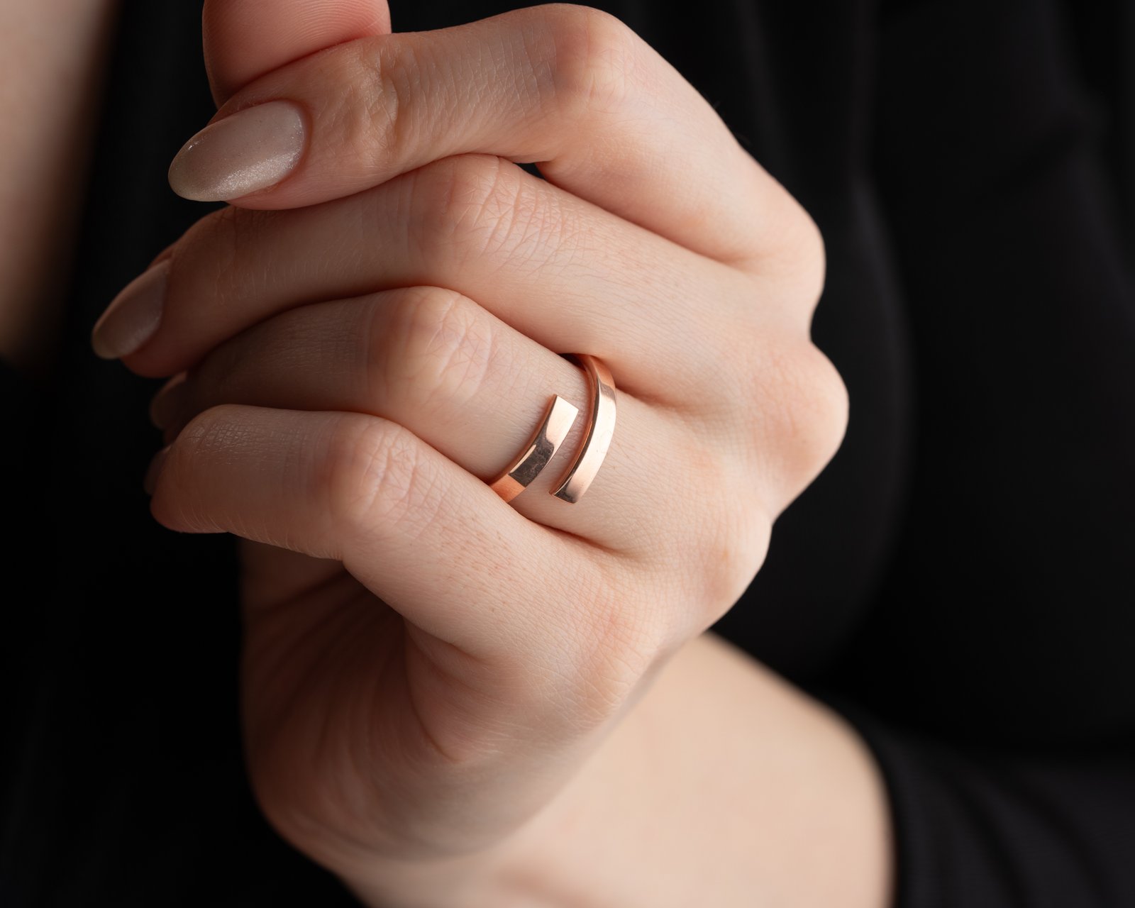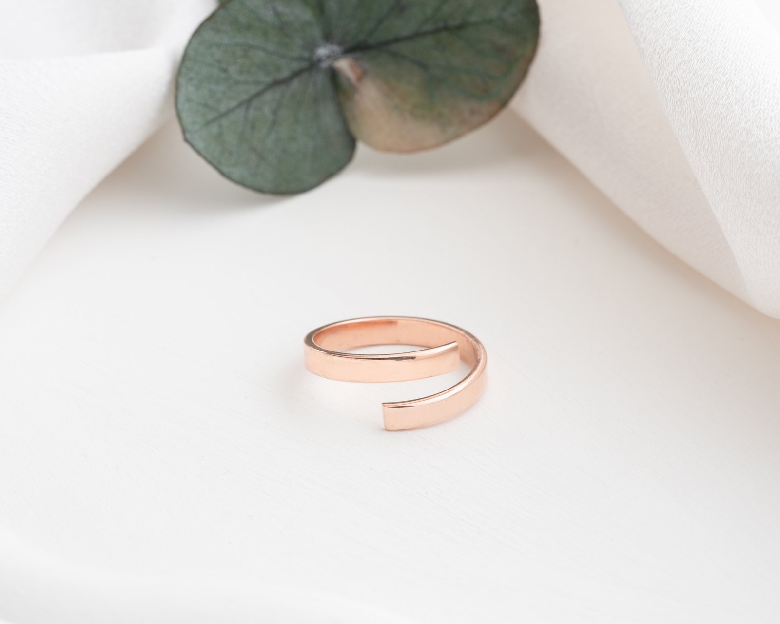 Highlight your modern style with this rose gold–plated minimalist spiral ring featuring a sleek open-band design. Its smooth, polished finish creates a contemporary and versatile look perfect for stacking or wearing alone. Lightweight, chic, and effortlessly stylish, this ring is an ideal accessory for lovers of clean, modern aesthetics.