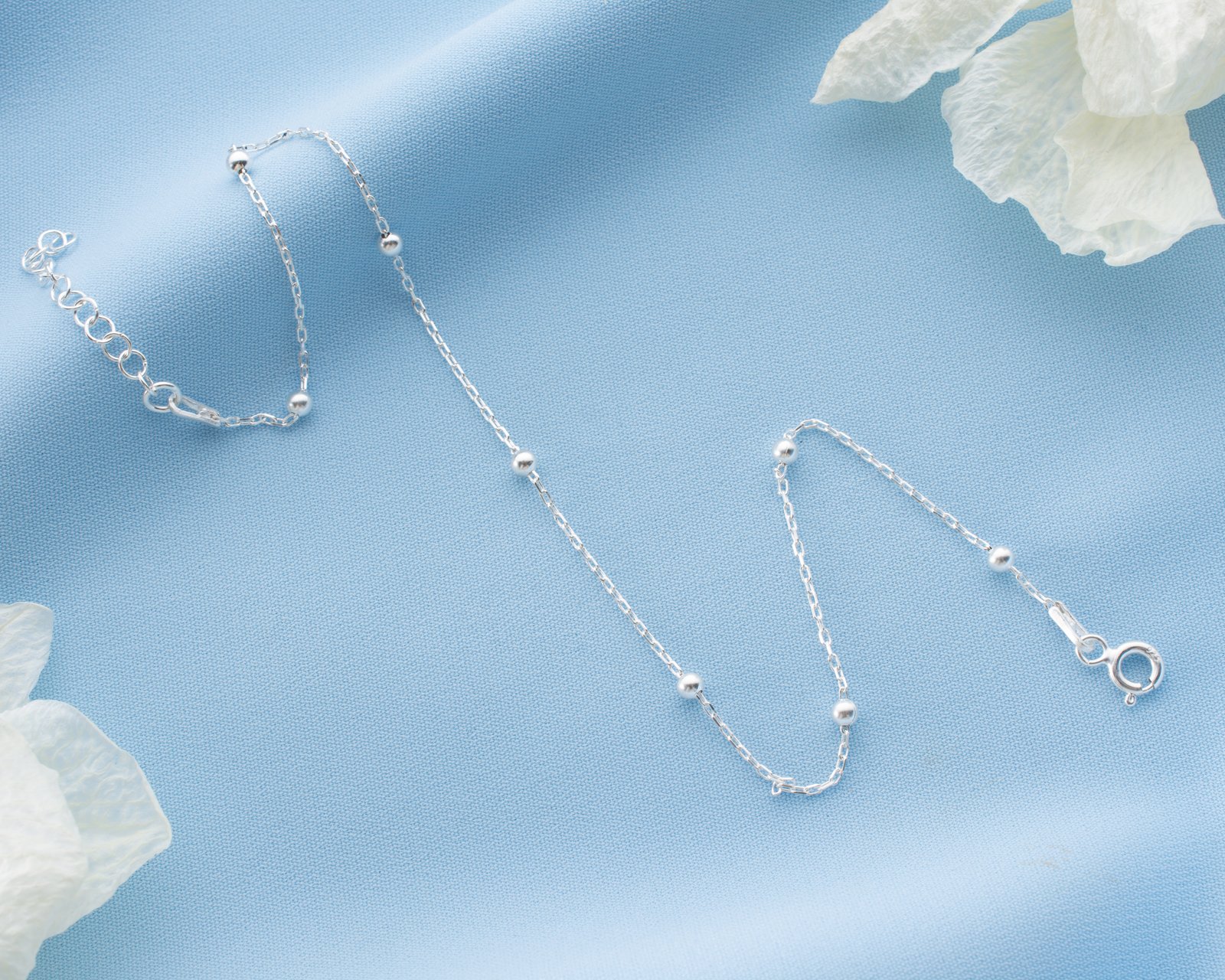Sterling Silver Beaded Anklet